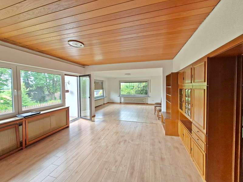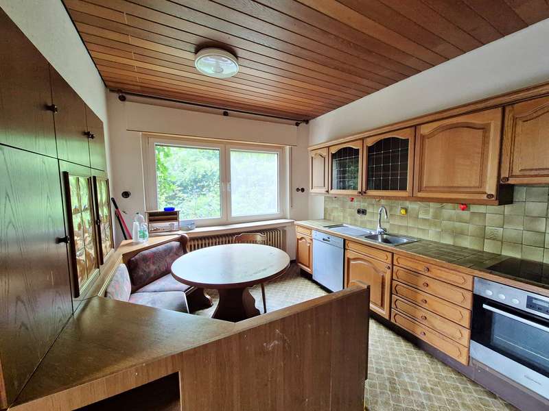 Built in 1967, this spacious property combines versatility and potential on a plot of approx. 770 m². The two-family house has a living space of around 172 m² and a well thought-out room layout, offering enough space for families with larger space requirements. On the first floor, you will find an impressive, open-plan living/dining area, which has been extended by an annex and offers plenty of space for socializing. The adjoining kitchen, which is only separated from the dining area by a sliding door, ensures short distances and a high level of convenience. When the weather is nice, you can move the family meal to the balcony and enjoy the sun. The apartment on the upper floor has a large roof terrace and charming wooden beams. These visually separate the open kitchen area from the dining room. There are three further bedrooms and a spacious, modern bathroom. Perfect for multi-generational living, living and renting or to give older children a high degree of privacy in their own home. Access to the property is secured by a gate, which offers additional security. It combines plenty of space and flexible usage options in a lively environment. The modernizations that have already been carried out represent a valuable added value and make it easier for potential buyers to turn the house into their individual home with manageable effort. We cordially invite you to view this property to see for yourself and discover the many possibilities in person.