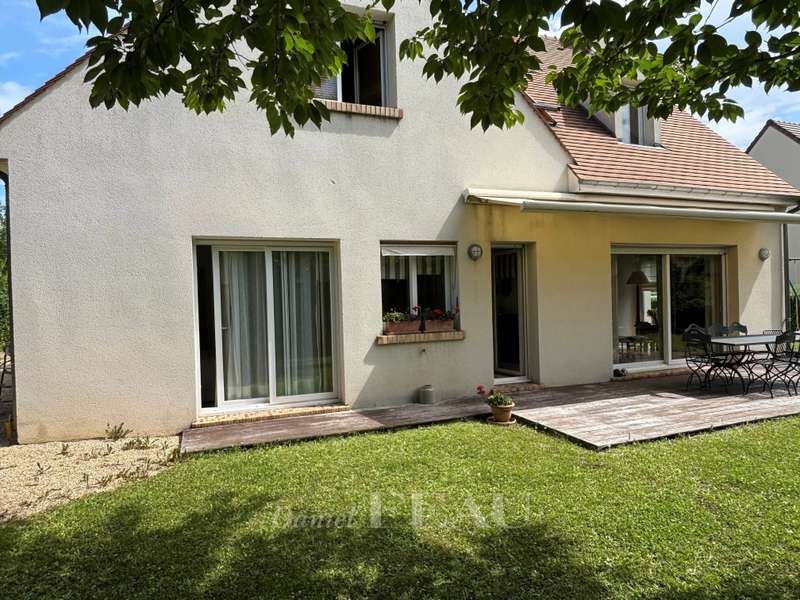 Sole Agent. Residential Fourqueux neighbourhood, a stone’s throw from the International School. This beautifully appointed family home offering 171 sqm of living space is set in a peaceful 700 sqm landscaped plot. It includes a spacious entrance hall with a fitted closet, a bright living/reception room with a fireplace opening onto a terrace and a south-facing garden, a dining room, a fully equipped contemporary kitchen (open-plan would be possible), a master suite with a bath/shower room and dressing room, a utility room, and a garage with a workshop. Upstairs are three bedrooms, a study, a bath/shower room and a wc. An attic above the garage could create further living space. An ideal family home near the shops, the bus lanes, the A14 autoroute and the renowned International High School.