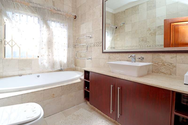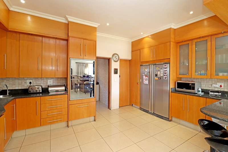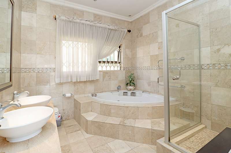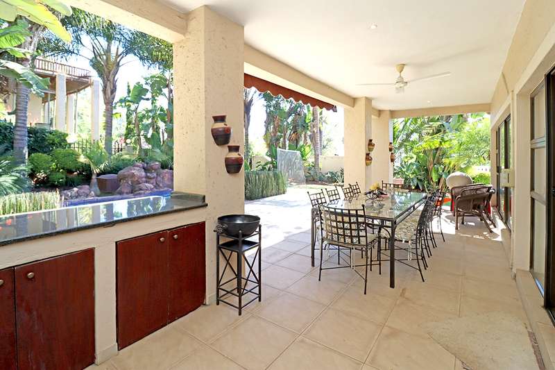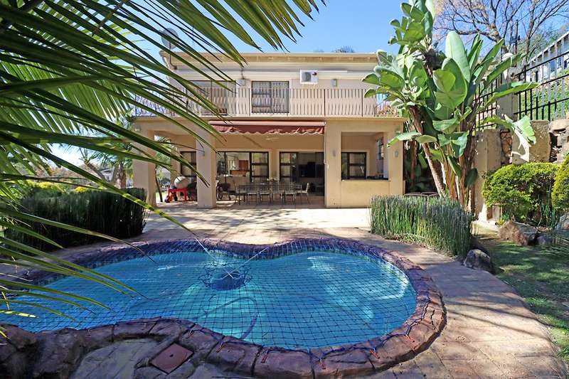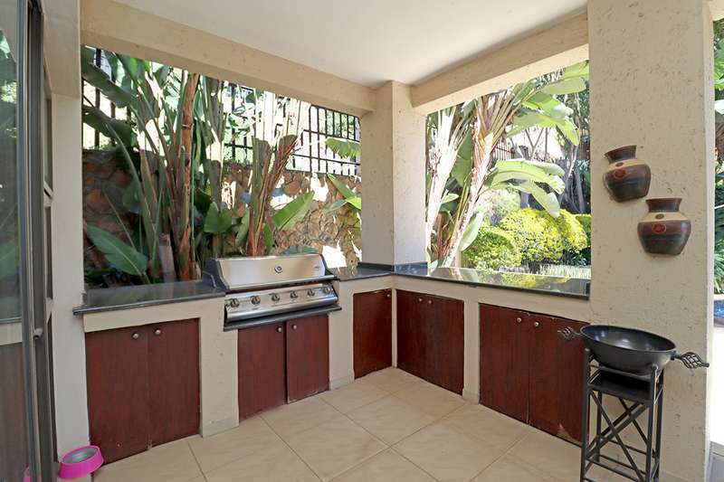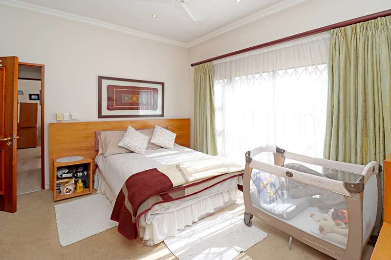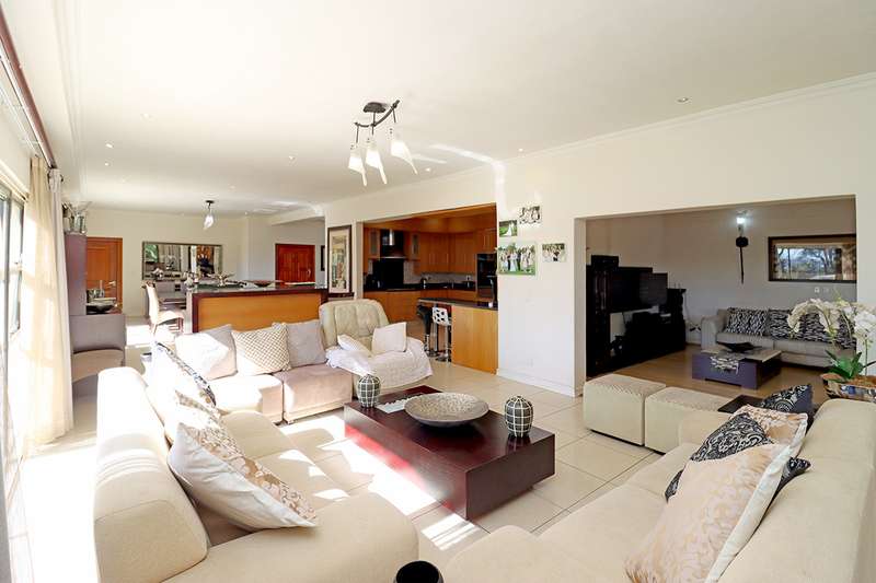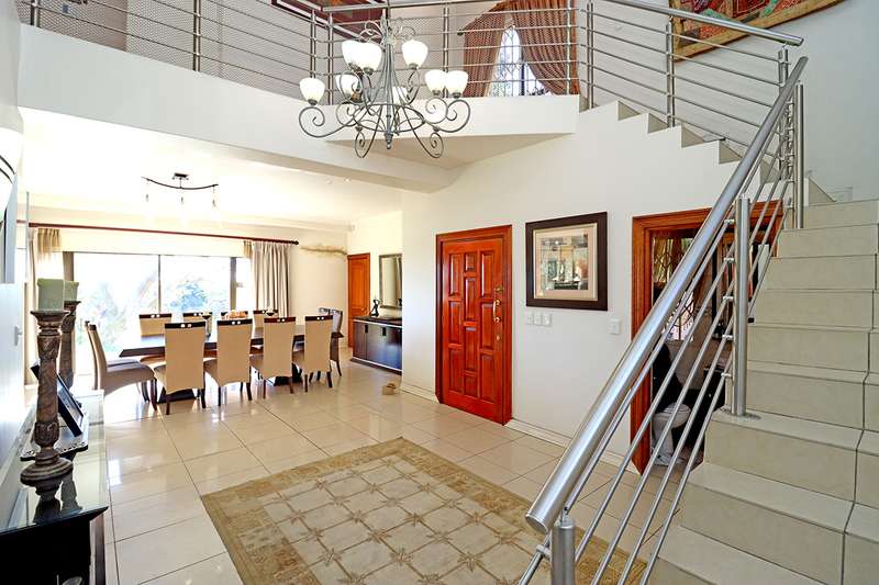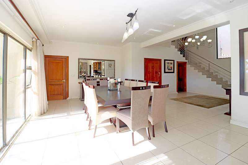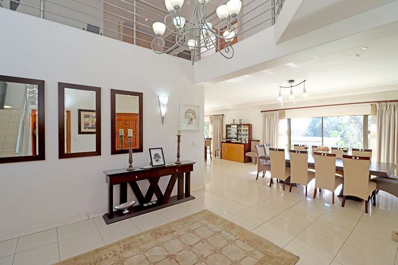Majestic, north facing double storey home with views This north facing family encompasses style and elegance throughout. A welcoming entrance hall leads to open plan living areas – a formal dining room, formal lounge which opens to a covered entertainment area, and a comfortable family room plus a guest toilet. The kitchen is well appointed with lots of cupboards, breakfast bar, scullery, eye level oven, hob and granite tops. Upstairs are three bedrooms – the main bedroom has an en suite bathroom and dressing room, and balcony to capture the views. The other two bedrooms have balconies and ample built in cupboards. There is a pyjama lounge for evening relaxation. There is also a second family bathroom upstairs. This home lends itself to family entertaining with its covered patio which has granite tops, built in gas braai, and comfortably fits a dining table and lounge suite. Overlooking the pool and established garden. For added peace of mind it has solar panels and an inverter. It is situated inside the boom. Three automated garages and additional visitors parking.