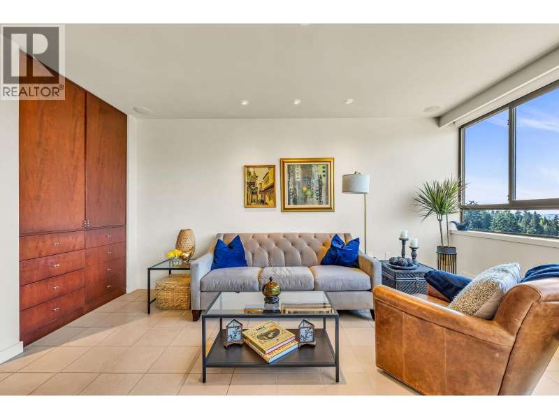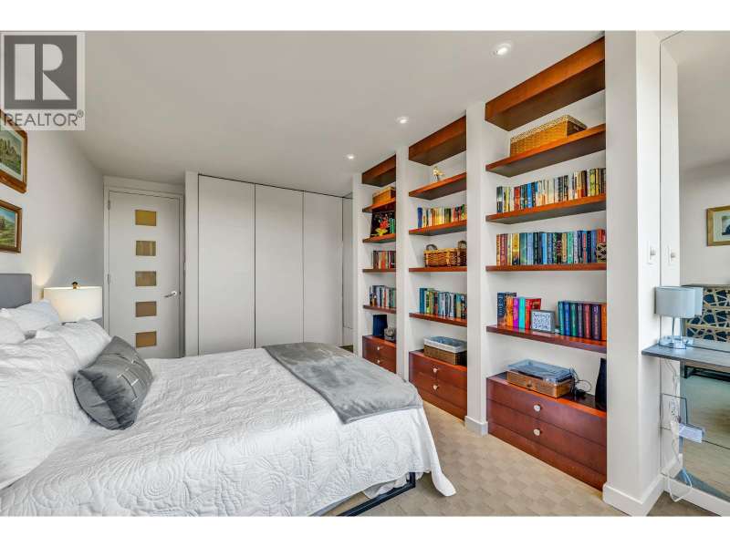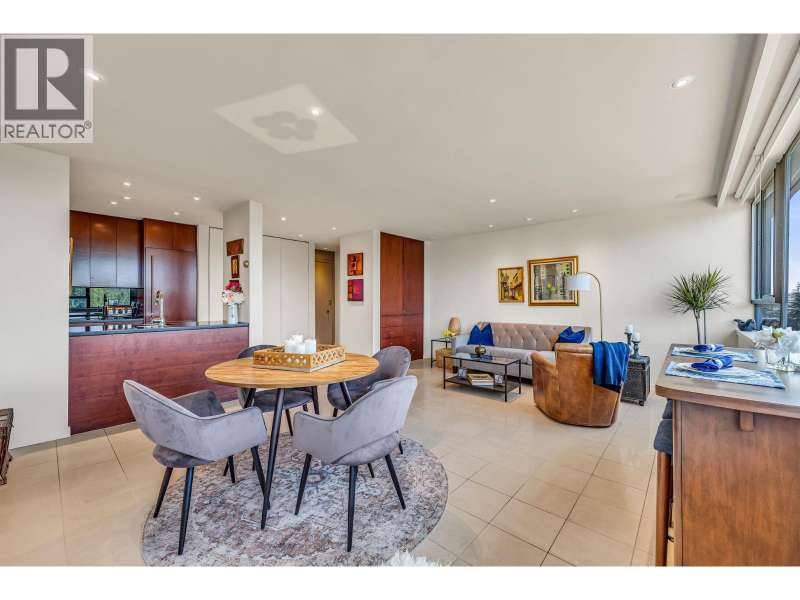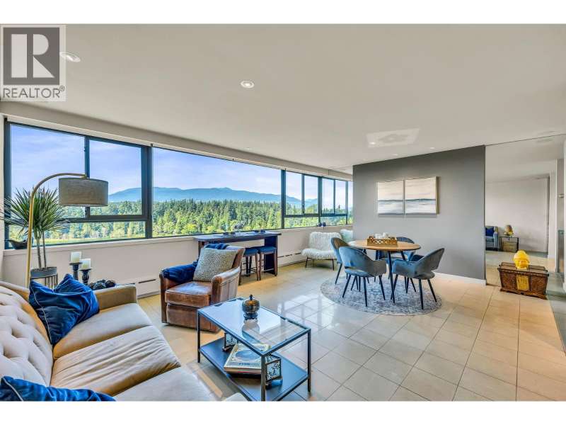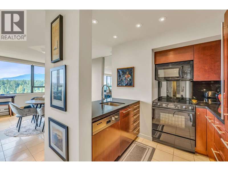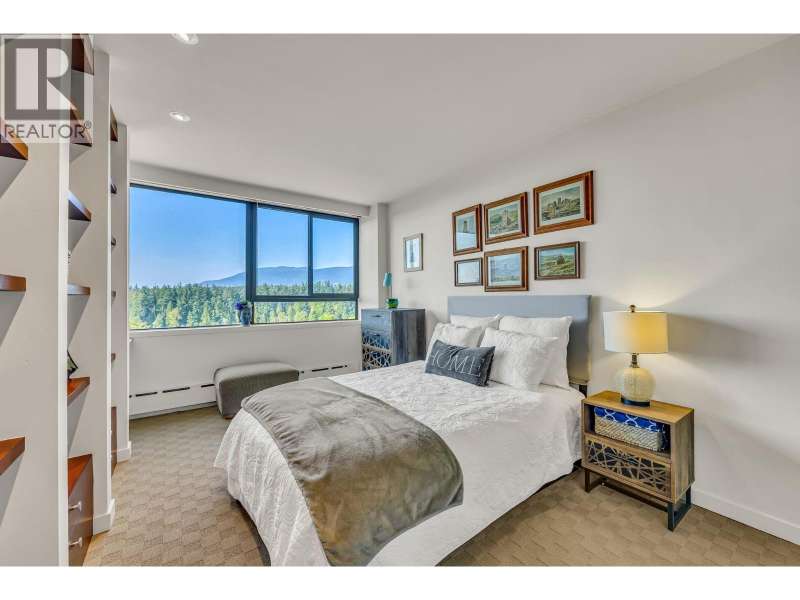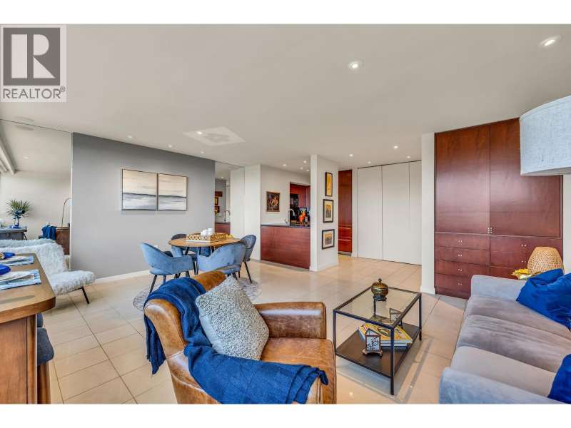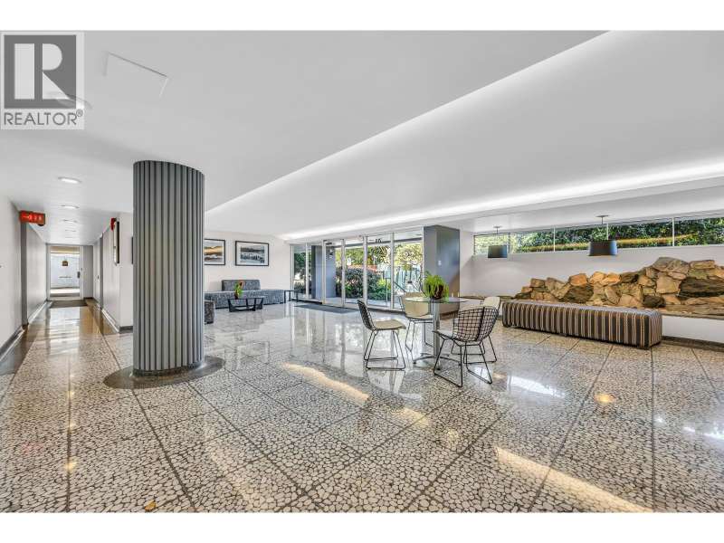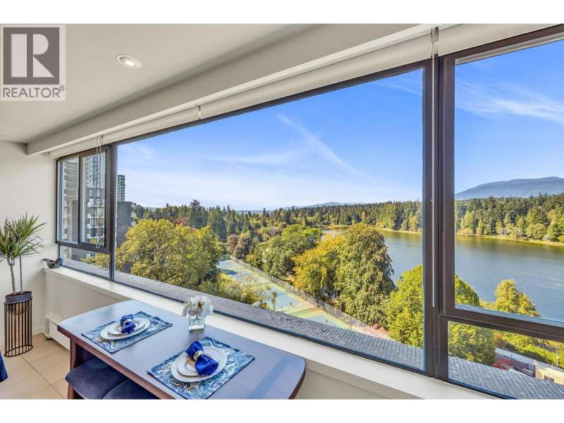 Experience urban living right next to 1,000 acres of lush forest! This top-floor, open-plan 1 BR home delights with truly stunning, unobstructed vistas sweeping over Lost Lagoon, N.S Mnts, and the freighters. Custom millwork throughout, hideaway TV cabinet, ceiling speakers, and art lighting. Perfect for entertaining, the living/dining/kitchen area lets you soak in those breathtaking scenes from every angle. The XL bedroom features built-in drawers and a beautifully finished closet, complemented by a luxurious bath with a heated floor. Step outside to endless recreation: the Seawall, tennis courts, and bike trails. Abundant visitor parking, plus a spectacular roofdeck just upstairs. Includes storage, indoor parking. No pets, no rental, 19+. Private viewings by app. (id:58403)