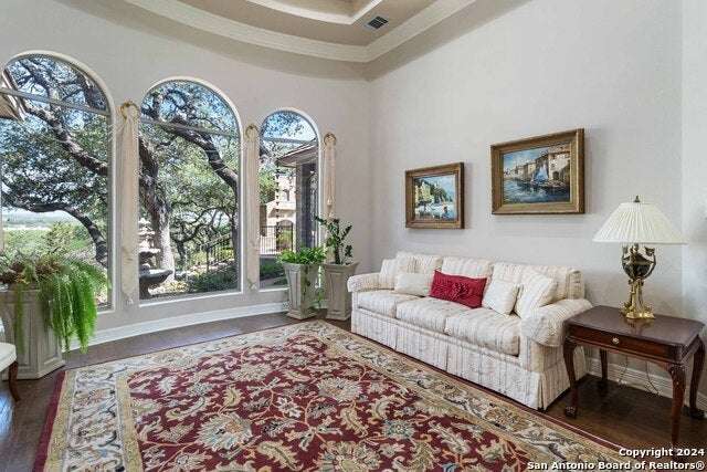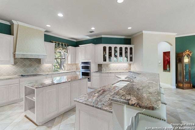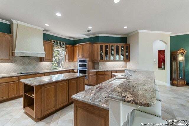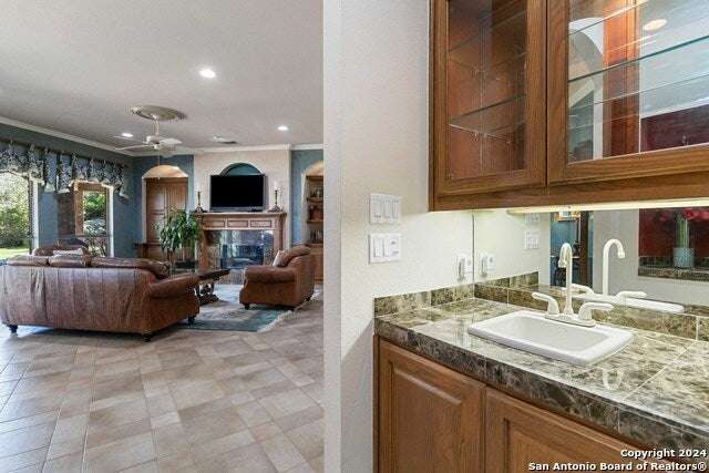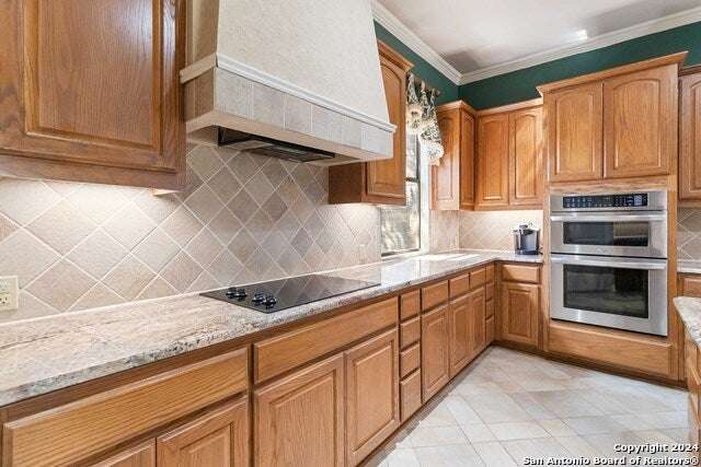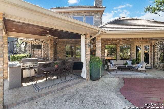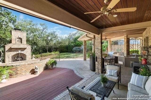Welcome home to this gorgeous Burdick custom home in prestigious The Pinnacle. Elegance is evident as you enter the foyer and are wowed by the fabulous views from the entrance, living area and master bedroom. The sunsets are awe inspiring over the hills and through the numerous oak trees. The outdoor entertainment, with built in kitchen, dining area and magnificent fireplace beckons to spend many hours entertaining or having morning coffee or evening cocktails while watching that sunset! With 4 bedrooms and 3 1/2 baths there is room for the entire family. The only room upstairs can be used as either one of the bedrooms (with full bath) or a play, media or craft room. The open floor plan is filled with natural light and the large kitchen, with plenty of seating, will be wonderful for family gatherings. The primary suite is spacious with a tall ceiling and has that breathtaking view. At just under 1 acre, the property extends beyond the wrought iron gate and down the hill. It has plenty of room for a pool to be added and the cleared trails through the trees afford great privacy and give the backyard a country feel. The Pinnacle is an upscale neighborhood convenient to all amenities including shopping, restaurants and medical facilities. Privacy is a again a priority with its guard gated entrance. Come make this truly remarkable home your showplace with your own special touches.