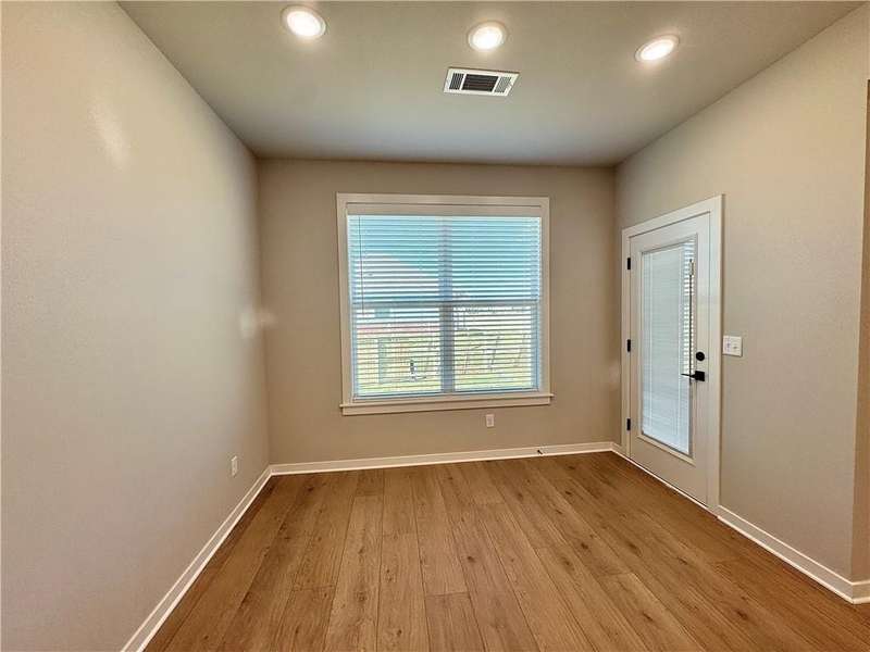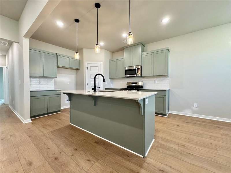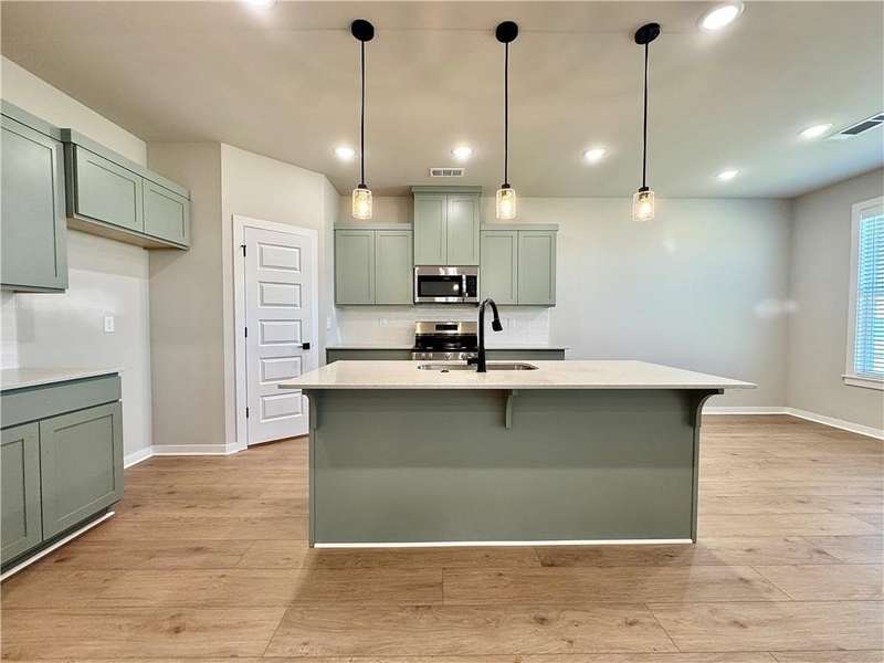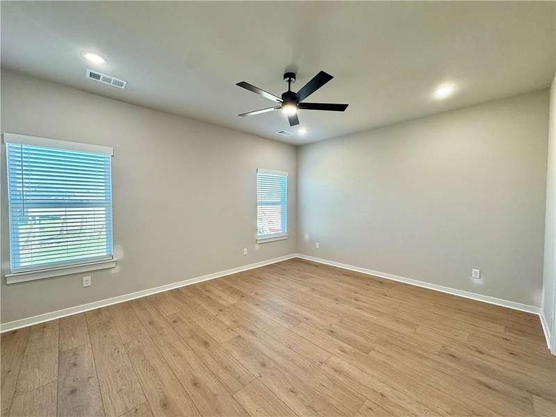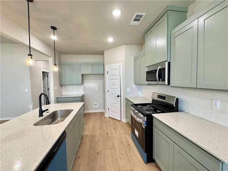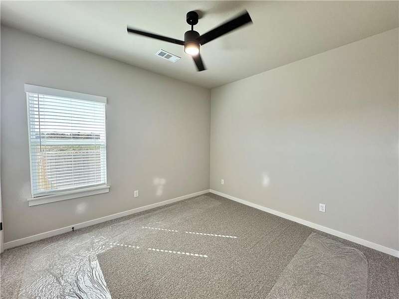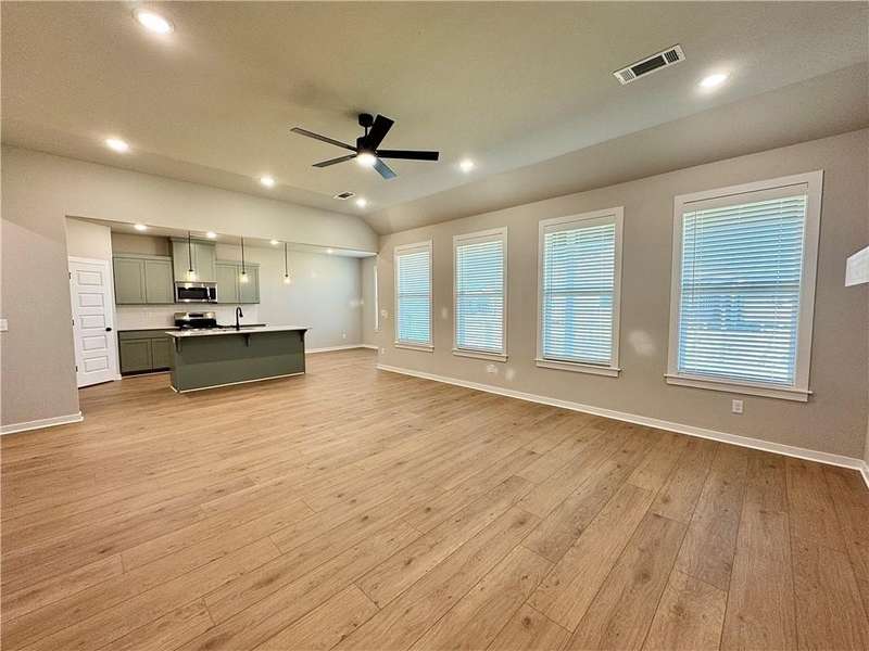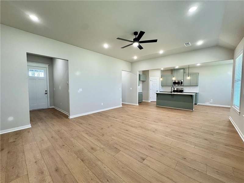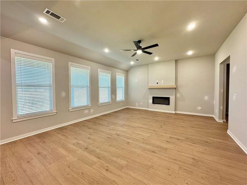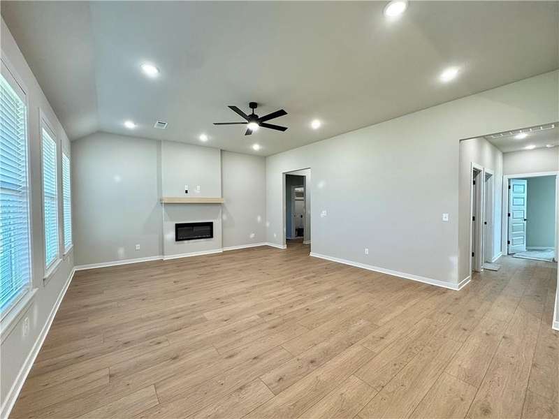 Fence, blinds and gutters included! Discover your dream home in the new neighborhood- Jacob's Crossing. Clifford plan with 1 level, garage on the right and East facing! 10 ft ceilings, linear electric fireplace, LVP flooring throughout the main areas and primary bedroom, quartz countertops and more. Chef's kitchen boasting Frigidaire stainless steel appliances, gas range, pantry, quartz countertops, bar pull handles, large island and gorgeous backsplash. Luxurious primary bedroom features abundant natural light, while the spa-like primary bathroom offers a walk-in shower, double sinks, tub, and spacious walk-in closets. Additional features include three large secondary bedrooms and a functional laundry room. Nestled on a generous lot with covered patio that overlooks the serene sodded, fully fenced backyard. Model home located at 3631 Tranquility St- Lot 1.