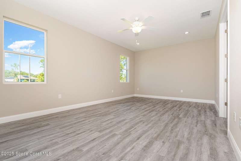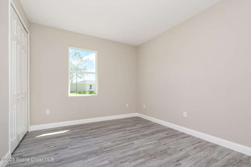 FLEX CASH AND NO CLOSING COST LOANS AVAILABLE. Exquisitely Built New Construction with a Pool-Ready Lot. Photos are of a like model and one or more photo(s) has been virtually staged. Nestled in the heart of Palm Bay, this luxurious 4-bedroom, 2.5-bath property is exquisitely built with all of the upgrades. The rare and spacious lot provides the perfect canvas to add the pool of your dreams and create a private backyard retreat. Inside, you will find a wonderfully open floor plan perfect for gatherings and entertaining. The capacious Chef's Kitchen is stylishly equipped with wood cabinets, stainless steel appliances, and ample storage. The contemporary living space is bursting with natural light and a flowing layout that is inviting and relaxing. This beautiful house is full of INCLUDED upgrades: solid wood soft-close cabinets in the kitchen and in the bathrooms, luxury vinyl plank, tiled showers, quartz countertops, 9'4'' ceilings, and 8-foot doors.