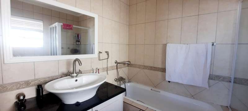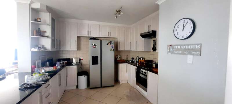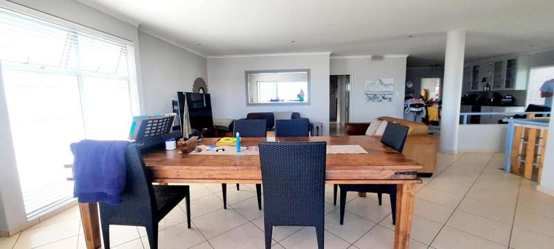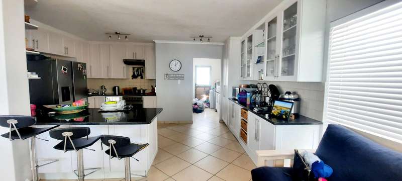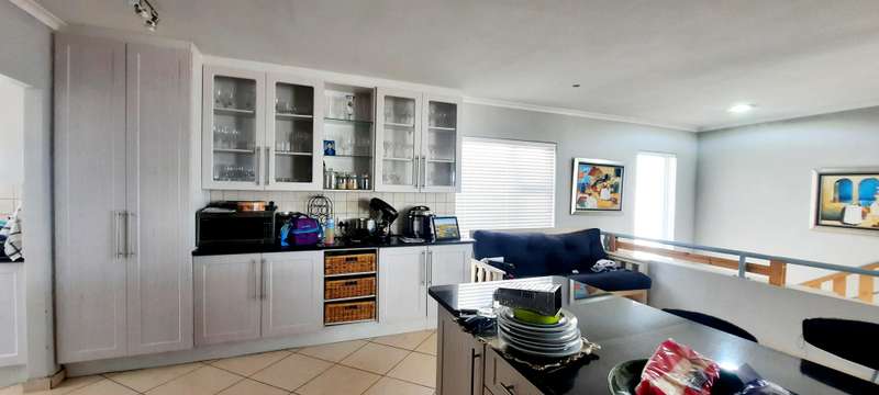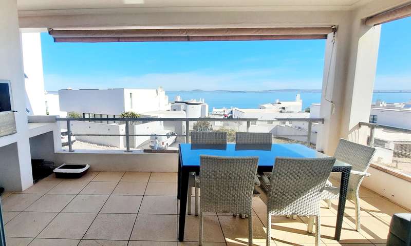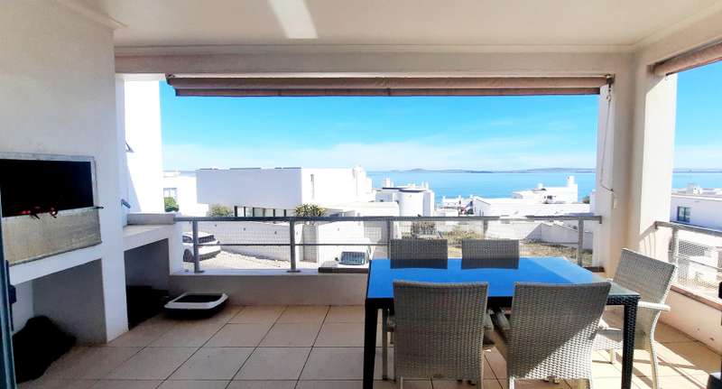 Exclusive Mandate A House with a view! Located in Paradise Beach, a private and secure estate of Langebaan, this double storey house offers a beautiful view together with a blend of seaside living. On entry level you find a welcoming entrance with stairs that leads up to the first level. The double garage leads directly into the home. On the first level the house offers three spacious, carpeted bedrooms with built-in cupboards. The main bedroom with an en-suite has a beautiful view overlooking the ocean. The family bathroom caters for the second and third bedrooms. A covered patio with a built- in braai flows seamlessly into the tiled, dining and living area making entertainment easy. The kitchen with ad on scullery has a lot of natural light which emphasis the easy flow of the house. The modern kitchen offers high-quality finishes and lots of cupboards. The house offers an extra flatlet with separate entrance. The flatlet caters for a double bedroom, kitchenette and en-suite. With the prime location of this property, it caters equally well for a holiday retreat, rental income as well as a family residence. Within the gated estate and just a short walk to the beach, you have privacy and security. Easy access to Mykonos Resort and Laguna Mall for shopping and dining. Current rental income of R26 000 pm. Call me to view.