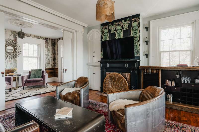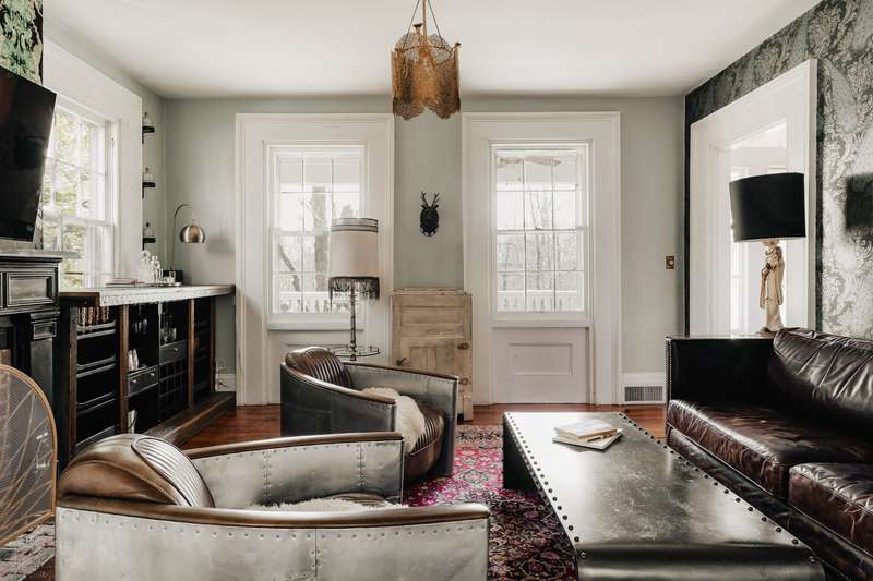 Welcome to Bruyn Estate, an exceptional Hudson Valley compound that brings together historic character and modern comfort across two remarkable homes: a lovingly restored 1835 Greek Revival farmhouse on the National Register of Historic Places, and a reimagined log home reconstructed from 1850s barn beams. The property is steeped in history: in the 1800s, it was a sheep farm that supplied wool garment materials to Brooks Brothers, and in the 1980s, it was owned by the great-grandson of the founder of Singer Sewing Machines. Set on 8.5 private acres with pastoral views and open lawns, this established short-term rental and event venue offers beauty, income potential, and timeless charm. The farmhouse captures the timeless appeal of early American architecture, with wide-plank floors and original details carefully preserved. Modern updates include a designer kitchen and primary bath with radiant heat, and stylish wallpaper and fixtures throughout. Two Rumford fireplaces and a pellet stove add warmth and ambiance, and recent improvements include a new furnace and AC unit, plumbing updates, fresh exterior paint, and structural repairs. Steps away, the Dog-Trot-style log home offers a completely different atmosphere: rustic yet refined, with soaring ceilings, reclaimed timber beams, and an open-concept kitchen, dining, and living area at its heart. The main-floor primary suite has a private entrance, while upstairs, four en suite bedrooms each have their own modern personality. A new hot tub enhances the home's outdoor living spaces, ideal for year-round enjoyment.The grounds offer generous space for events, gatherings, and future possibilities. Over the years, Bruyn Estate has hosted countless weddings, retreats, and guests, drawing acclaim in features on HGTV, the Magnolia Network, and beyond. Move-in ready and exceptionally maintained, a furnished option is also available allowing for a seamless transition into a full-time residence, weekend retreat, or turnkey rental operation. Just 90 minutes from New York City and down the road from scenic Mohonk Preserve, Minnewaska State Park, and some of the region's best dining, like One with Land, and Wildflower Farms, this modern estate offers endless possibilities for living, hosting, and creating in the Hudson Valley.