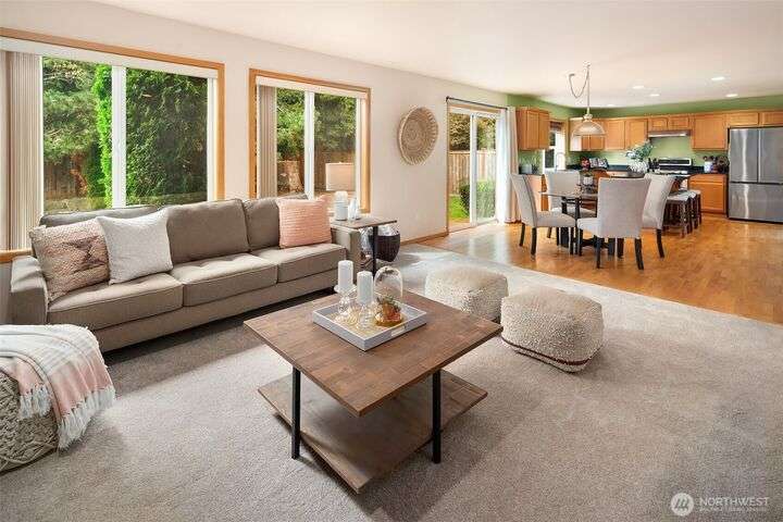 Welcome to this serene, beautifully maintained home in the highly desirable Bellacarino Woods community! This spacious residence features a bright open floorplan w/ brand new flooring that flows effortlessly through the living, dining & kitchen areas—perfect for everyday living & entertaining. The large, level backyard is fully fenced—ideal for relaxing, gardening or outdoor gatherings. Generous 3-car garage provides plenty of space for storage, hobbies & parking. Primary suite offers a luxurious 5-piece bath & walk-in closet. Bonus room is perfect for a home theater, office or rec space. Recent updates include newer roof, water heater & a well-maintained furnace. Conveniently located near Enterprise Elementary, shopping & freeway access!