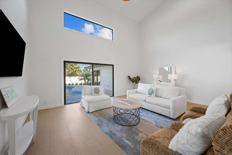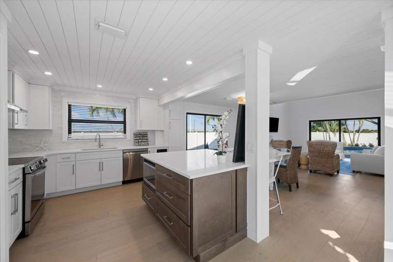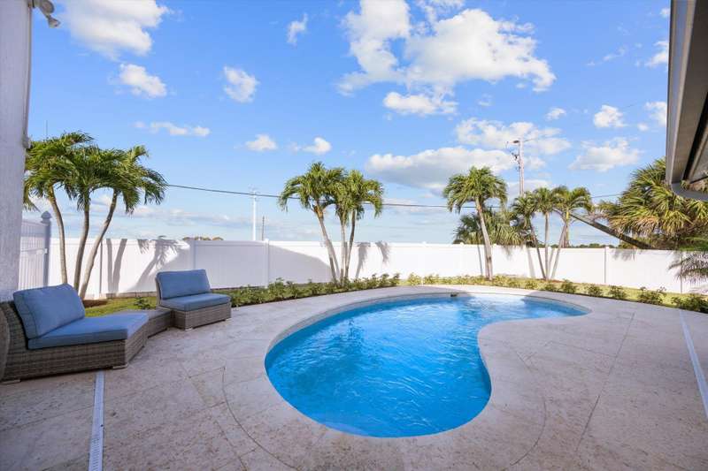Just moments from the sand in the coveted coastal enclave of Juno Beach, this beautifully reimagined 4-bedroom, 3.5-bath residence combines modern sophistication with relaxed beachside living. Set on a high-elevation lot approximately 35 above sea level, the property showcases lush, manicured landscaping, expansive outdoor living spaces, and a sparkling heated pool ideal for year-round enjoyment.The heart of the home is a stunning newly designed modern kitchen, highlighted by an oversized quartz island, custom cabinetry, and premium appliance package. The open layout unfolds into a bright and airy great room and dining area, framed by large sliders that open to the private backyard oasis -- great for effortless entertaining. SEE MORE