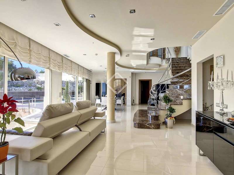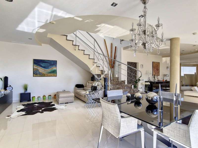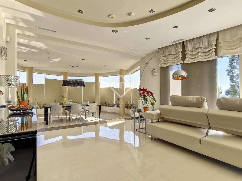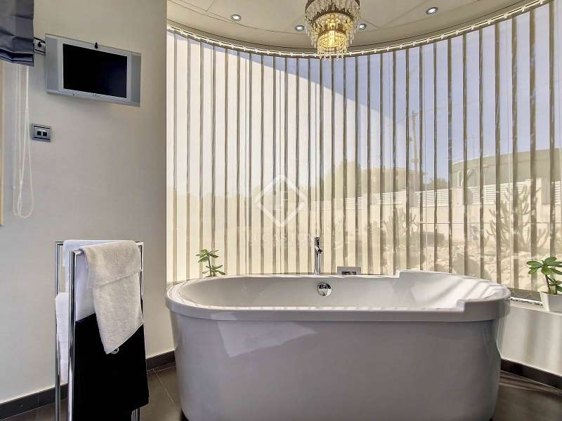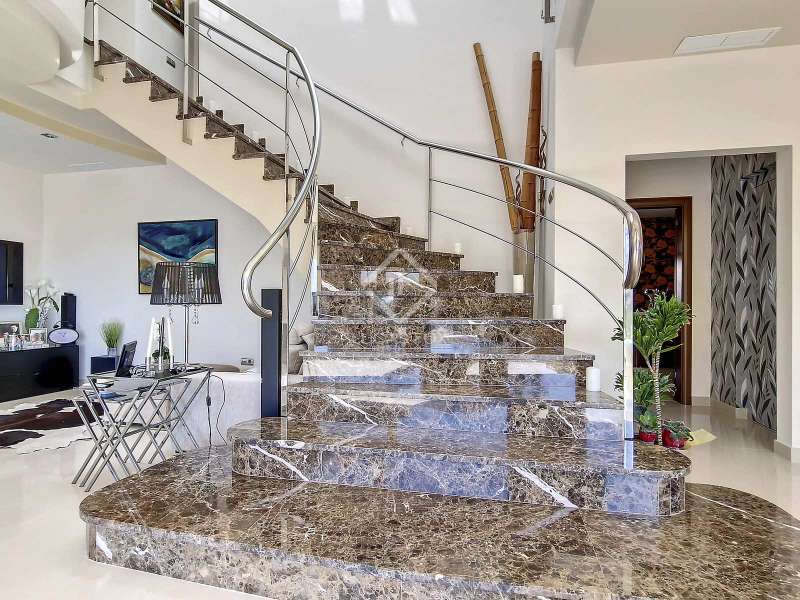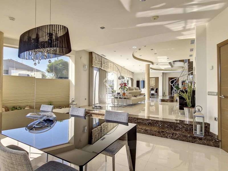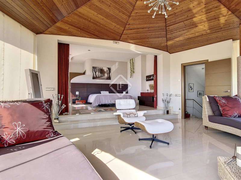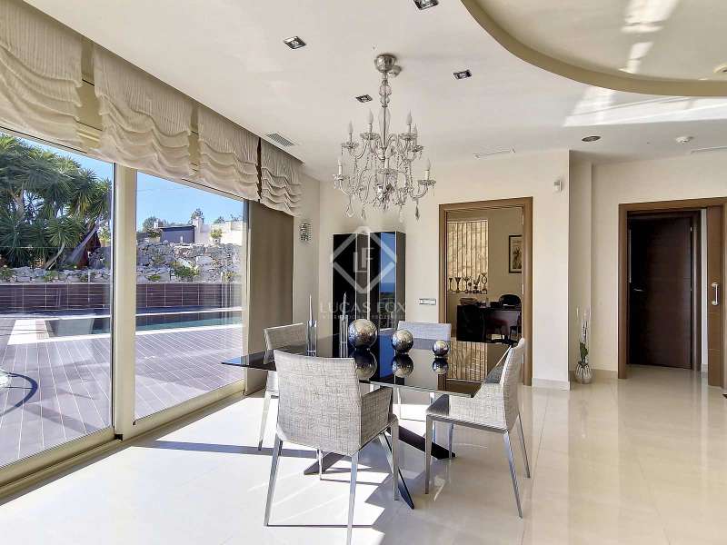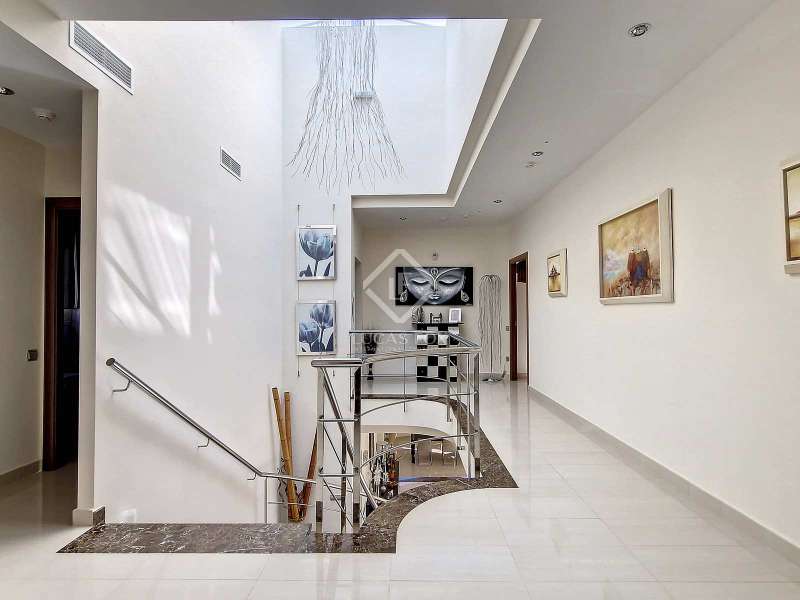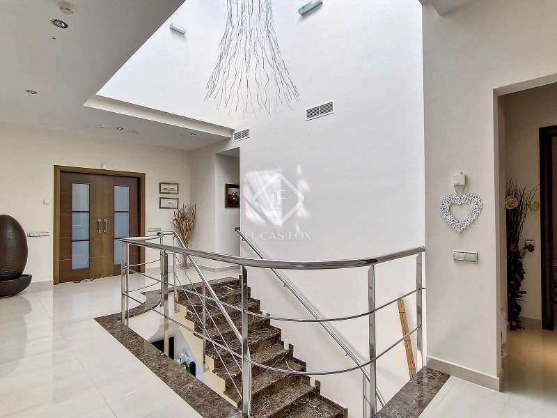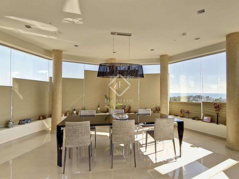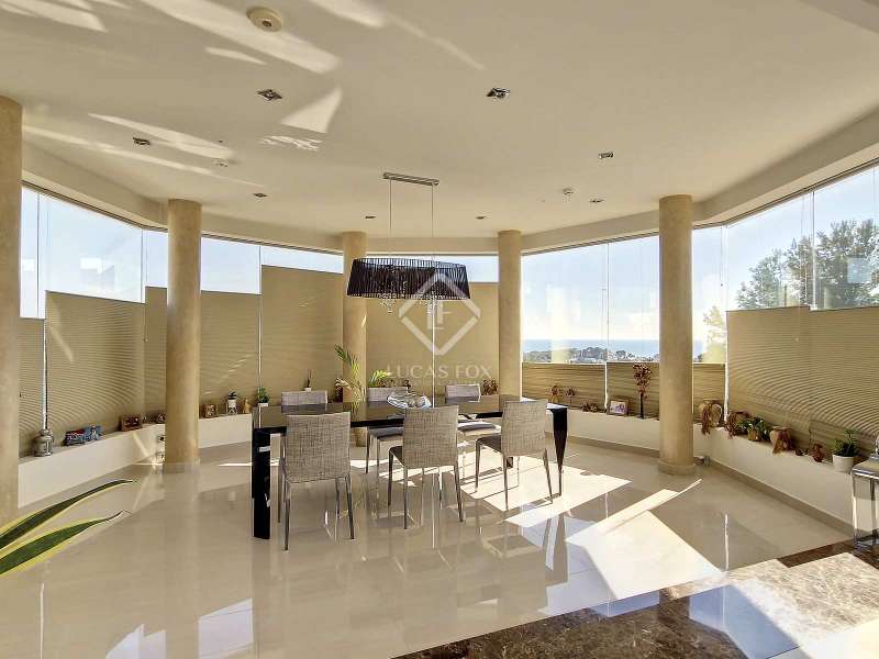 Lucas Fox presents this exclusive 541 m² villa built in 2006 on a double plot that adds a total of 1300 m², divided into two floors, plus the lower ground floor, with an lift that communicates with all floors. It enjoys spectacular views of the sea, the garden and the pool. It has diaphanous and open spaces and high ceilings, which allows natural light to enter all its rooms. We enter the house through a entrance hall that leads to an elegant, very bright entrance hall , with a central skylight and marble stairs that give us access to the ground floor. On the upper floor , we access the different rooms that are arranged around the entrance hall. On the one hand, we find two double bedrooms that communicate through a beautiful bathroom with a shower. On the other side, there is the spectacular 80 m² master suite , with a large glass door and panoramic views of the sea. In the bedroom itself, on the one hand we find the open-plan rest area with a double-height floor , with the bed located in the upper part and a space for relaxation, reading or exercise in the lower part, with views of the sea. To the other side, through a corridor we reach the dressing room and a spacious bathroom with a shower and bathtub. We go down the marble stairs and access a spacious and bright 90 m² living-dining room with large windows with beautiful views of the sea that give access to the garden and pool. This space also has a double-height floor , which differentiates the dining area and the living room and leisure area. On this same floor, we find a bedroom that is currently used as an office and a guest toilet. Next, we access the 35 m² kitchen, fully equipped with a utility room, pantry and access to the outside, where we find a summer dining room . Finally, we go down to the lower ground floor that consists of a staff bedroom with a complete bathroom , a garage for three cars, four multipurpose rooms, a control room for all the systems and another complete bathroom . The exteriors include a garden with an automatic salt chlorination pool, a garage with an automatic door with capacity for three cars, outdoor parking with capacity for five cars and a summer dining room . The property has underfloor heating by means of solar panels and support from a diesel/gas boiler, ducted air conditioning with a heat pump, porcelain tile floor , an alarm with five virtual security perimeters, three exterior and two interior, home automation in the expansion and aluminum carpentry with insulation by chamber. It also has a power generator with automatic operation in the event of a power failure, as well as closed-circuit television cameras that can be controlled remotely. An incredible opportunity for those looking for an exclusive property in a quiet area close to the sea. Contact us for more information or to arrange a visit.