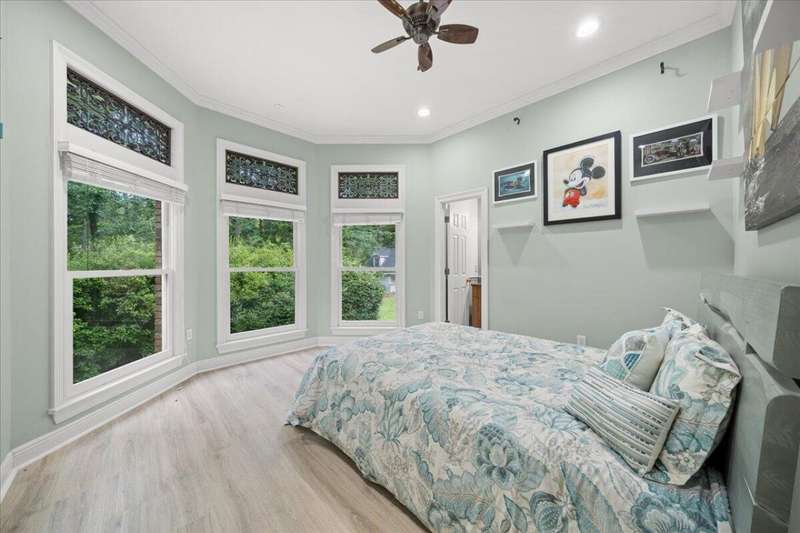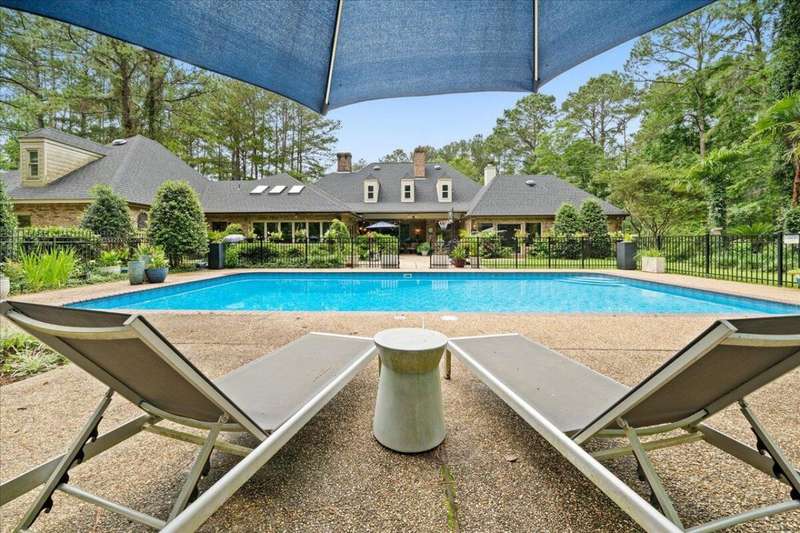Ready for expansive space in a multigenerational home? This Exceptional Luxury Living in Canebrake's Premier Lake and Golf community has it all!! Discover resort style living in this stunning 6 bedroom 6.5 bath estate located on a large beautifully landscaped lot in the sought after Canebrake community. Designed for entertaining and everyday comfort, this home features an expansive open kitchen, with newly installed marble counter tops, formal dining room, sitting room, large breakfast area with wet bar, and 2 other spacious living areas-each offering flexibility and sophistication. Three of the six bedrooms are private en suites, providing comfort and privacy for family and guests. The primary suite has its own fireplace and beautiful views of the back yard and pool with a private access from the sitting area.