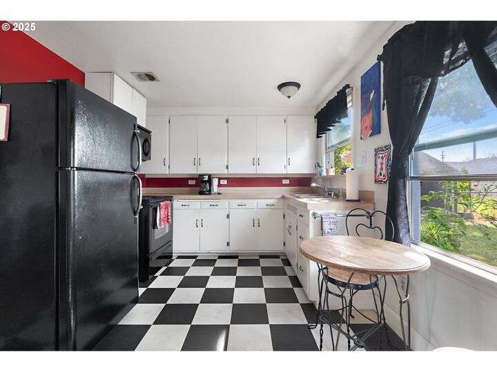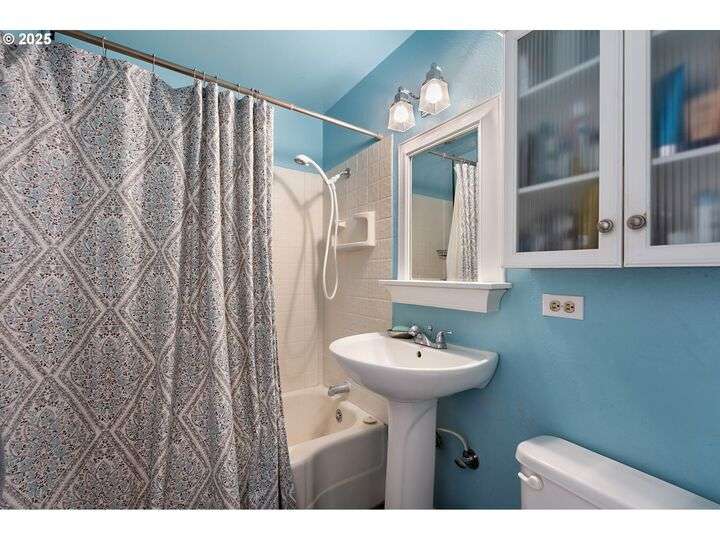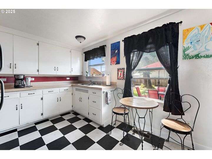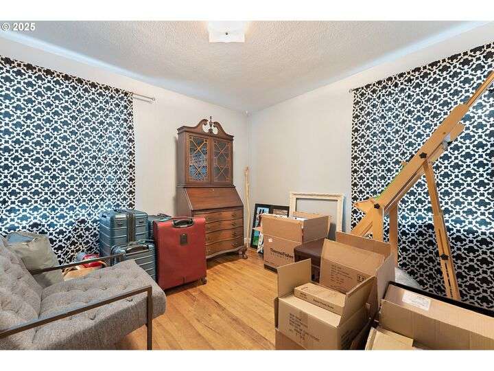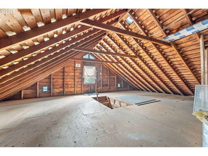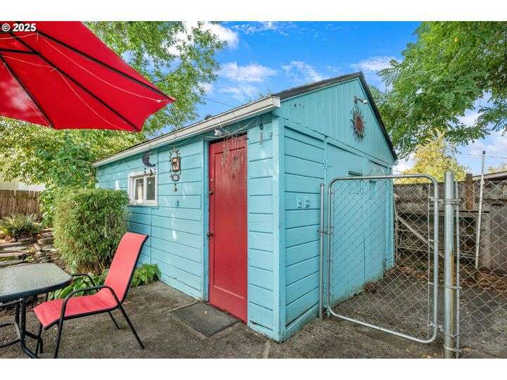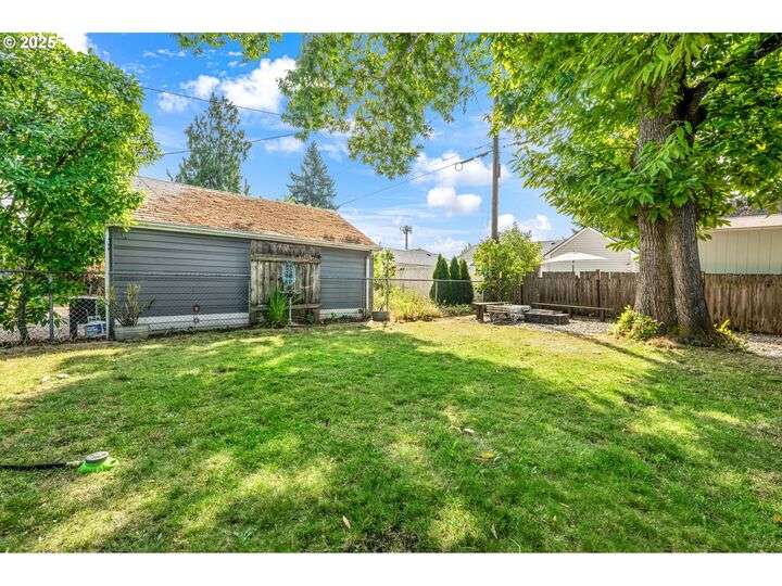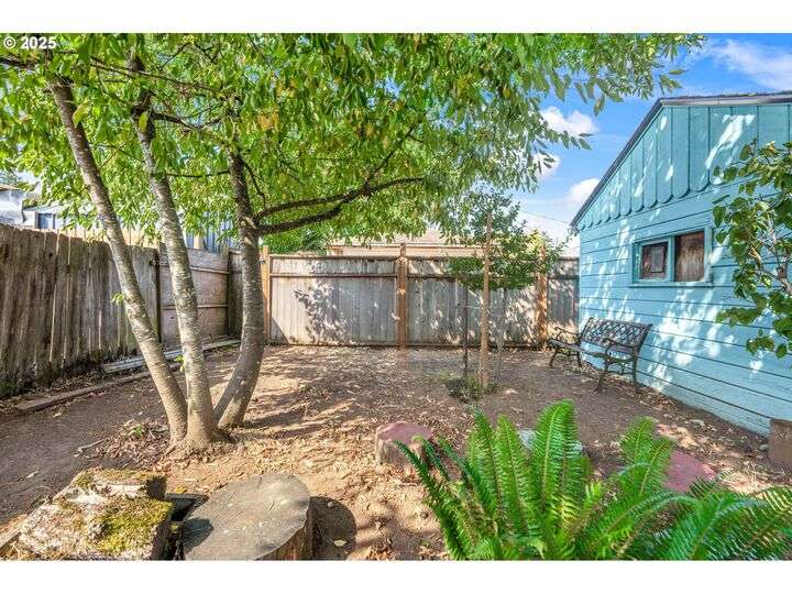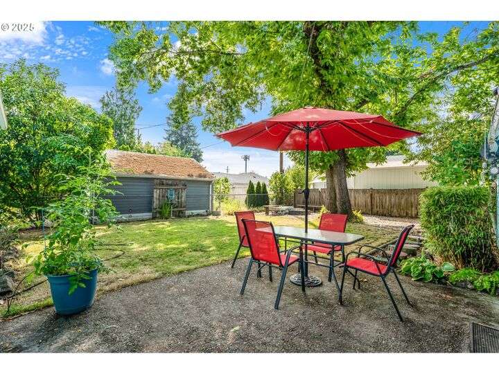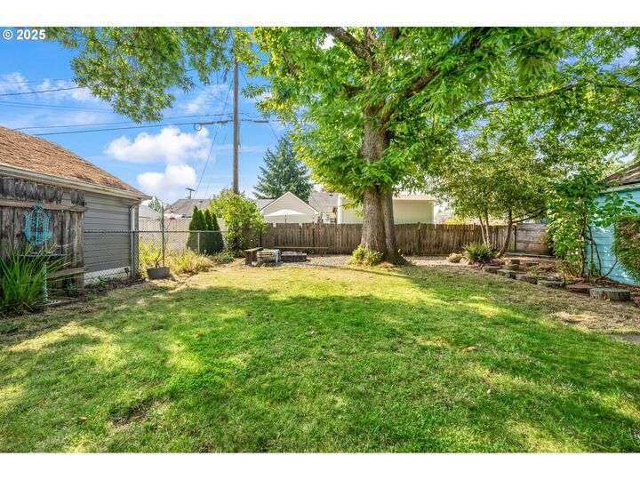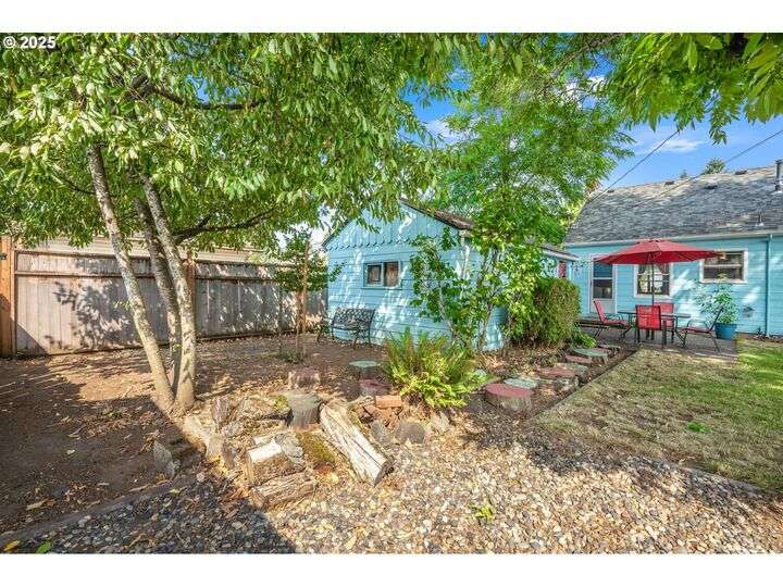 Classic Cape Cod Bungalow. Light and airy living room with period woodburning fireplace, hardwood floors, and corner windows. Bright spacious eat-in kitchen with access to the private fenced yard, with patio and garden area. Perfect for outdoor entertaining. Two bedrooms on main floor, both with hardwood floors. Gas forced air heat. Additional 340 unfinished square feet upstairs. Accessed by a non-conforming staircase. Just waiting for a creative touch. Detached single car garage/shop area. Convenient to Clark College, shopping, restaurants, public transportation.