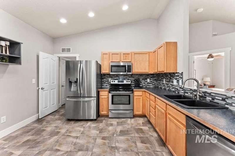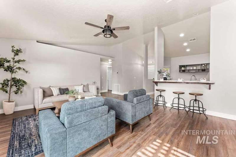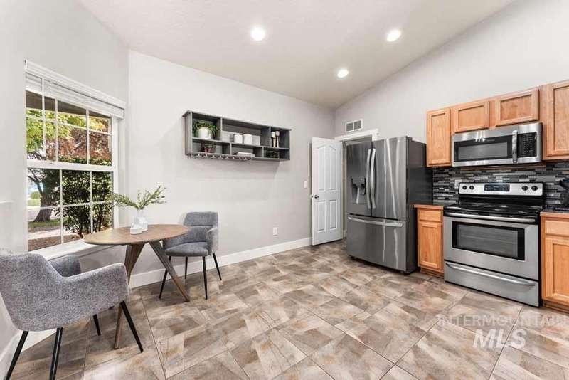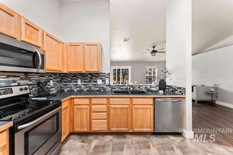 Welcome to this beautifully updated single-level home in between Caldwell and Nampa! Ideally located near Karcher Boulevard, you’ll enjoy easy access to shopping, dining, and everything the city has to offer. New roof installed, water heater plus brand new AC and Furnace in 2025!. Step inside to find freshly updated interior paint, sleek LVP flooring, refined baseboards, and a stylish backsplash. The open living room features soaring ceilings and opens to a covered patio with a pergola - perfect for relaxing or entertaining. The kitchen includes stainless steel appliances and a cozy dining nook. The bright primary suite offers an en-suite bath and walk-in closet, while the split-bedroom layout provides added privacy. Outside, enjoy a spacious backyard with garden boxes and a storage shed. Close to I-84, Lake Lowell, and local conveniences, this home blends comfort, style, and location! Great school district!