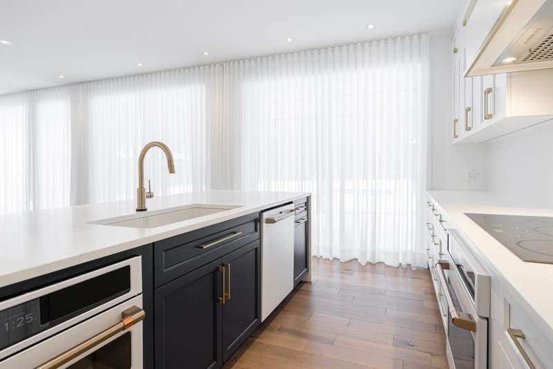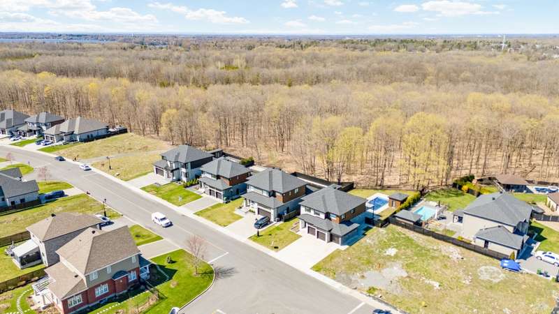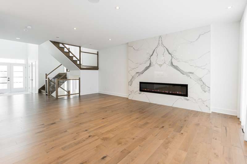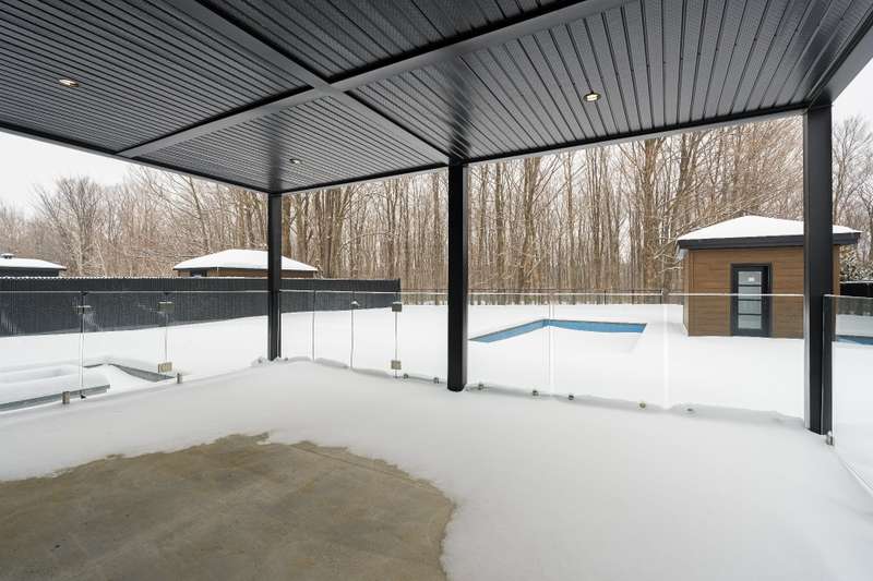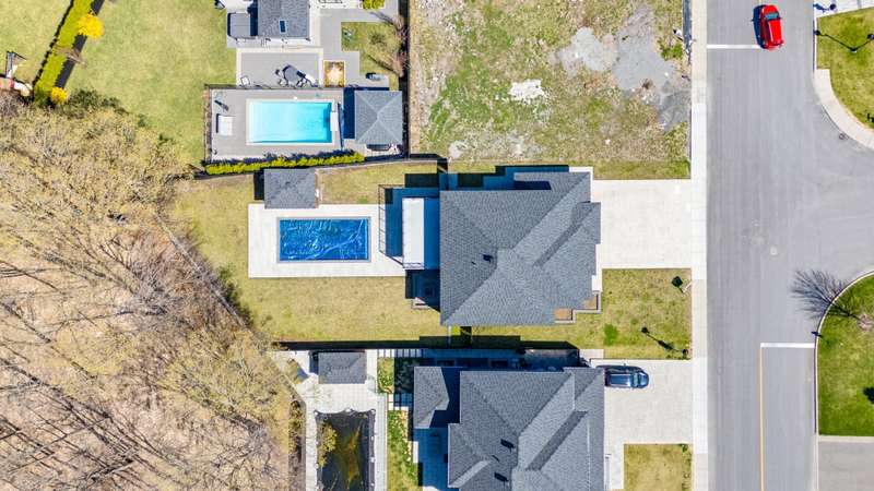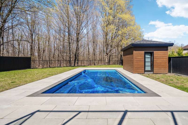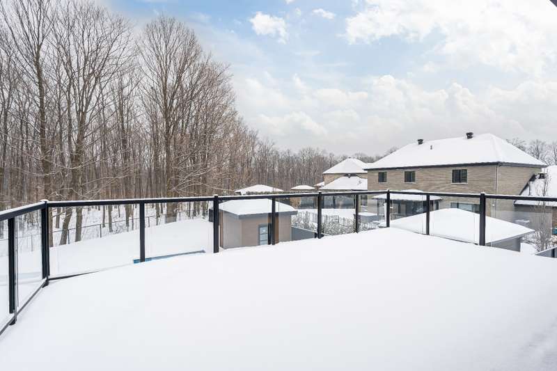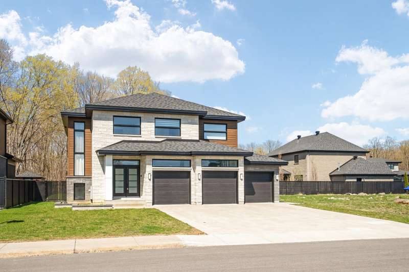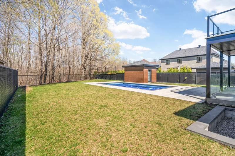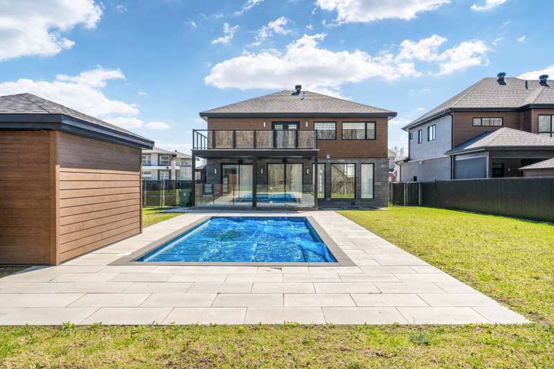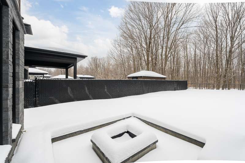 1092 Rue Bellevue in Ile-Bizard is a modern, elegant home completed in 2021 by Groupe Grilli Samuel. With custom features like oversized windows, engineered maple floors, and a locally sourced stone facade, it blends modern design with functionality. The open-plan layout includes a chef's kitchen, high-end finishes, and a striking porcelain slab fireplace. The private quarters offer four bedrooms, a luxurious ensuite, and a terrace. The lower level features a wine cellar, home theatre, and fitness room. Outdoors, a heated saltwater pool and pool house await. Smart home tech adds convenience throughout.