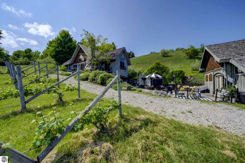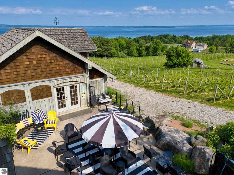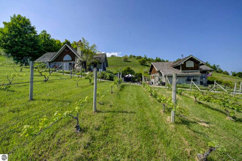 Discover Willow Winery & Vineyard - the 5th oldest working vineyard & winery on the Leelanau Peninsula boasting incredible views over West Grand Traverse Bay. This well-established, turn-key business/property includes the tasting room, home & equipment barn on 11.45 acres. The winery tasting room & patio include indoor and outdoor seating, a bar area, retail space, 1/2 bath and storage above. The French Provencal residence (currently used as vrbo/airbnb, is offered turn-key as well & situated to enjoy the great views of the water & vineyard. Classic board-and-batten siding, a cedar shake roof, wood fireplace and imported cathedral doors from France that open into the primary suite. Impressive stone landscaping has a timeless, century-old character that blends perfectly into the rolling vineyard backdrop. The lower level of the residence is fully outfitted for winery production. A two-level equipment barn offers ample space for storage. The size of this estate makes it very approachable and manageable for the beginner or seasoned wine maker. The home operates as a successful VRBO/Airbnb rental, providing an additional revenue stream. Whether as a private residence, continued short-term rental or full-time winery operation, Willow offers flexibility, history and unmatched charm in the heart of Leelanau Wine Country. Bonus, shared frontage on West Bay (1/4 share). Wine inventory (bottle & bulk included in list price at production value); will be broke out with bill of sale at closing.