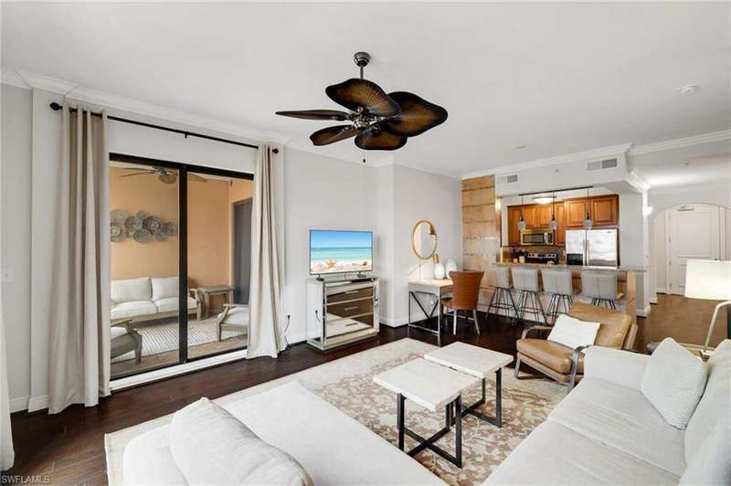 Situated directly on the main street of Coconut Point Mall, this seasonal rental offers unmatched convenience with shopping, dining, and entertainment just steps from your door. The condo is turnkey furnished and features a fully stocked kitchen with all appliances and utensils, in-unit laundry, walk-in closets, and two private balconies that overlook the vibrant main street below. The building includes elevator access and offers resort-style amenities such as a community pool and spa. Enjoy the convenience of having major retailers like Target, Dillard's, and Barnes & Noble within walking distance, along with popular restaurants and cafes including Tommy Bahama, Divieto Ristorante, and Starbucks. You're also just minutes away from Miromar Outlets, Hertz Arena for concerts and events, and a short drive to the beautiful Gulf beaches. This property is available for short-term seasonal rental from October through April, with flexible monthly options within that time frame. It's an ideal choice for anyone looking to enjoy the Southwest Florida lifestyle during season while having immediate access to premier shopping, dining, and entertainment.