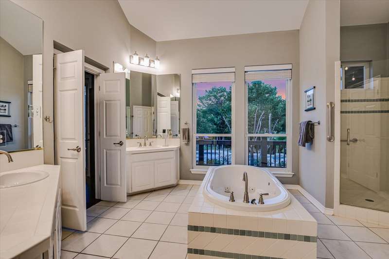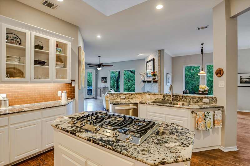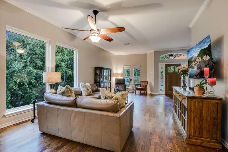 Well-maintained and updated home on iconic Mount Bonnell Rd, bordering the Bright Leaf Preserve with grandfathered private park and Lake Austin access via Mount Bonnell Shores Colorado Crossing park--no HOA dues required. Upgrades include a custom 6' stone wall with gated entry, extended paver driveway, and 8' garage extension. Inside features hardwood flooring, open living/dining, updated kitchen with gas cooktop, white cabinetry, and double ovens. Primary suite opens to a full-length back deck leading to a resurfaced pool/spa (2021). Spa-like primary bath, built-ins in living room, and updated lighting throughout.
