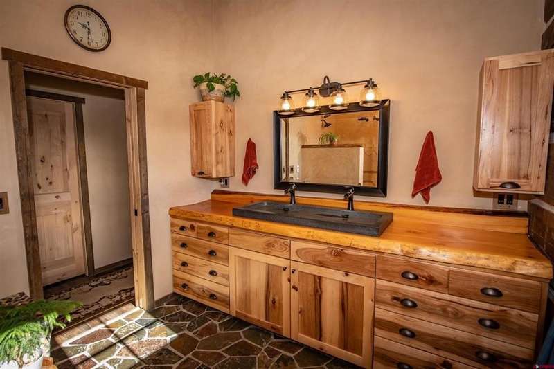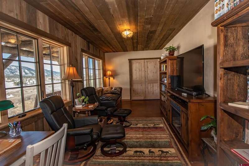 Edward W Keyes, Jr., Galles Properties, C: 970-398-0211, ewkeyes@gallesproperties.com, www.gallesproperties.com: Welcome to 521 Spring Creek Circle where mountain living meets rustic elegance. Completed three years ago and listed well under appraised value, this beautiful 2 bedroom 2 1/2 bath custom home must be seen to appreciate the craftmanship and attention to detail. The home is situated on 3 acres in the gated community of Crowley Ranch. Crowley Ranch features 1300 acres of open space with private hot springs and stocked lakes for fishing. The home overlooks Log Canyon Lake, open space and backs up to a private ranch with conservation status, ensuring utmost privacy. The home features hand hewn log siding and custom beams throughout. The stunning great room is separated from the library by a stone fireplace with log mantels that is gas on one side and wood burning on the other. The great room opens to a covered deck with expansive views. The home boasts custom knotty hickory cabinets and Douglas fir counter tops in the kitchen. Upper level flooring is stone and Karndean loose-lay luxury vinyl. The mechanical upgrades include whole house water filter system, a reverse osmosis filter system in the kitchen, in floor heating on both levels of the home, radon mitigation, Rinnai demand water heater, Lochinvar boiler system, Sunlighten infrared sauna and Starlink internet. The 3 car garage boasts an attached 16'x25' workshop with metal roof, wood burning stove, electric heat and 1/2 bath.