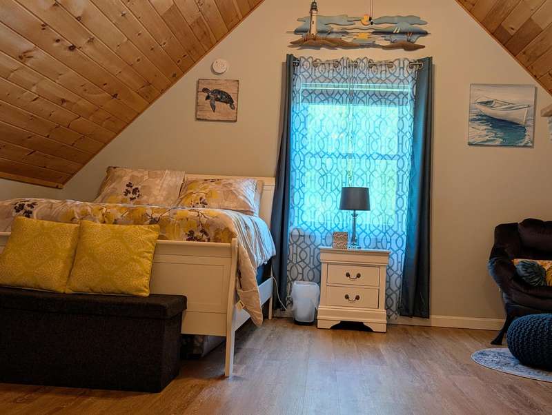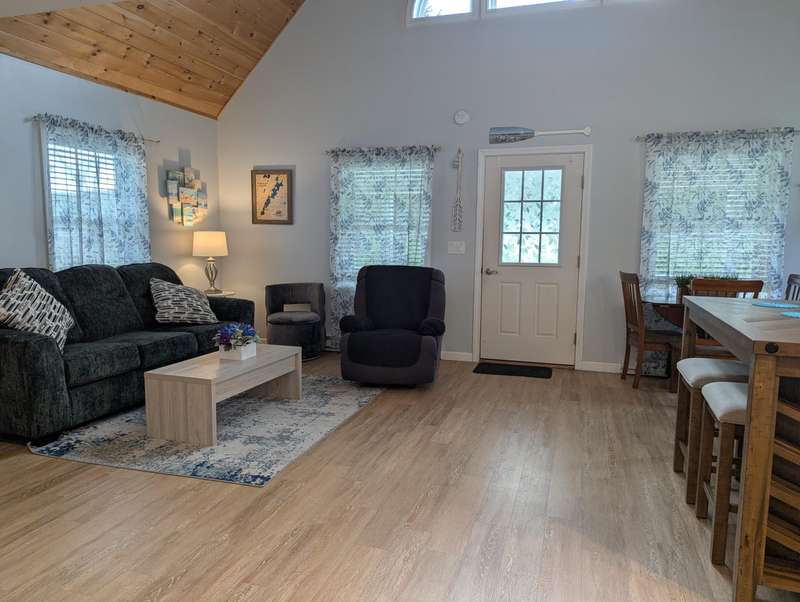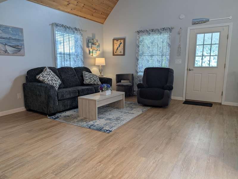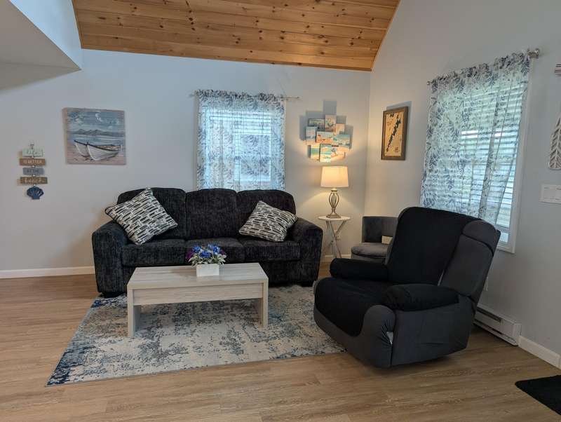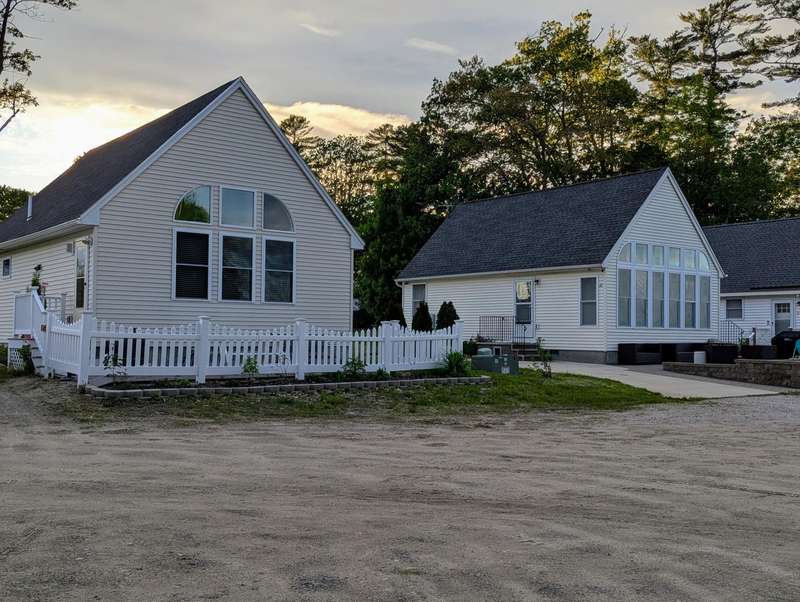 Contemporary year round cottage with sandy frontage on Woodbury Pond. Beautiful open porch to watch the lake from. Shared beach frontage with a community dock. Open concept kitchen and living room with vaulted ceilings. First floor bedroom with a walk in closet. Second bedroom is in the open loft space. Extremely energy efficient heating and cooling thru a heat pump and electric baseboard. No rental restrictions on this condo if you wanted to use it as an investment property. Call Tyler Gaudet at Sprague & Curtis Real Estate at 207-623-1123.