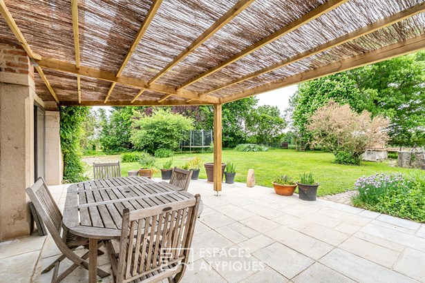 Situee a Chaleins, dans un hameau paisible, a seulement 10 minutes de Villefranche-sur-Saone, cette ancienne ferme renovee developpe une surface habitable genereuse, au coeur d'un terrain arbore de 2 600 m2, sans vis-a-vis.