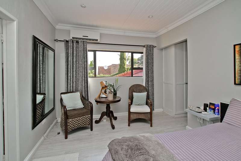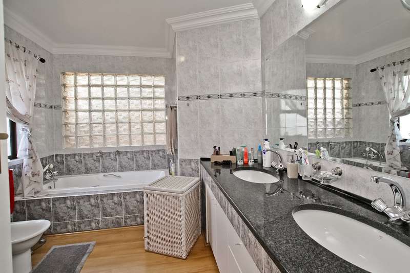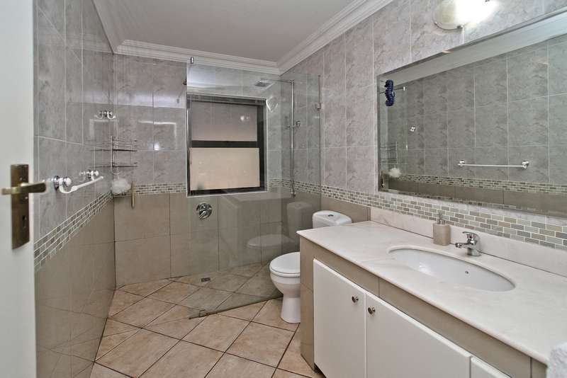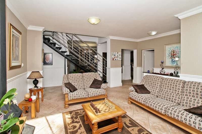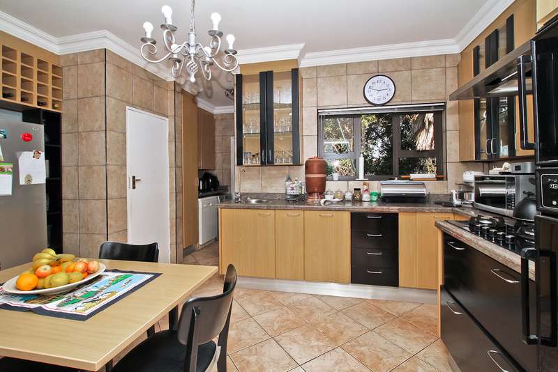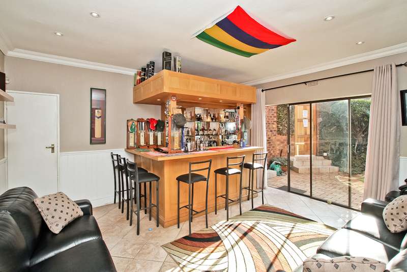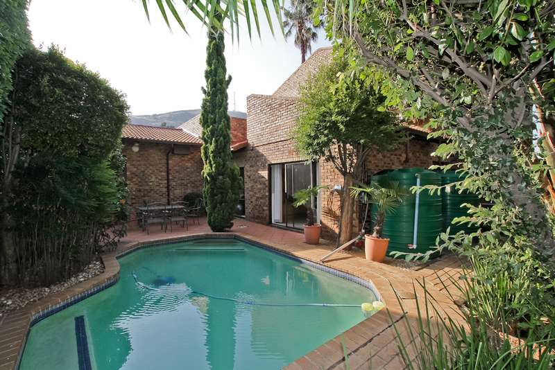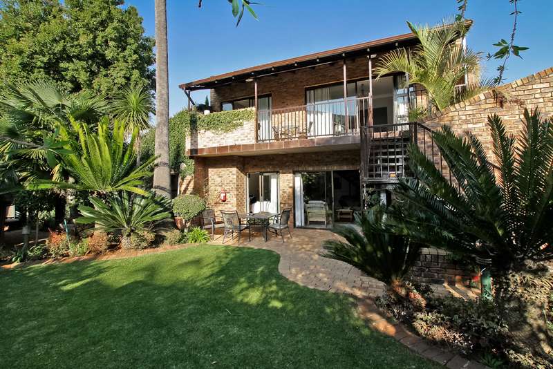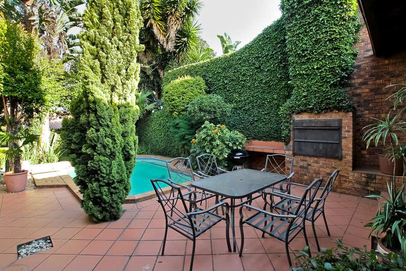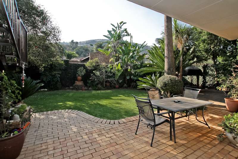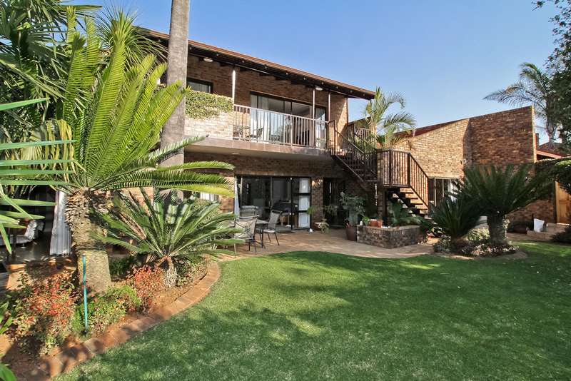 385 sq. 5/6 Bedroomed unit with perfect opportunity to Air b and B the 2 bedroom upstairs section which has own entrance. Downstairs has ¾ bedrooms,2 bathrooms (Mes), family room with built in bar, lounge with fire place and built in braai, dining room, study or 4th bedroom. Kitchen (gas hob) and space for dishwasher, pantry cupboard and scullery with space for 2 appliances. Upstairs section can be accessed from inside or own entrance from outside. Open plan lounge/dining, kitchen (gas hob),2 bedrooms,2 bathrooms and veranda with views. Solar heated swimming pool, established garden with lapa,25sq storeroom/workshop area, double garage, staffroom plus bathroom, heat pump and 8kv inverter (can accommodate solar panels), wired for tv in all bedrooms. Small very well-run complex situated in a boomed off street. Suitable for a large family or opportunity to rent out upstairs to supplement your bond. Close to shopping centres, highways and OR Tambo airport. A must see.