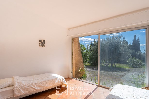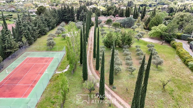 Architect-designed house with Mediterranean lines, olive grove, swimming pool and tennis court