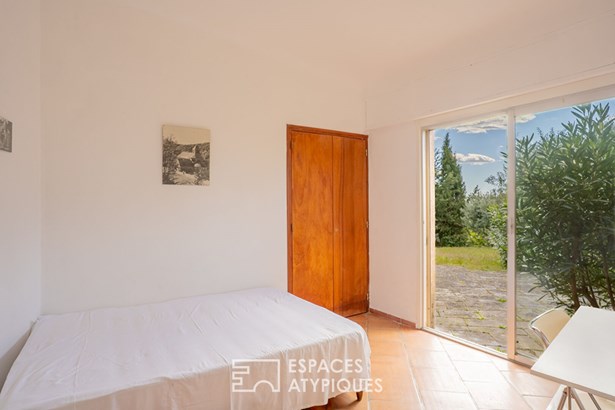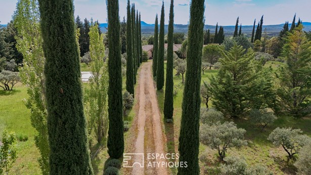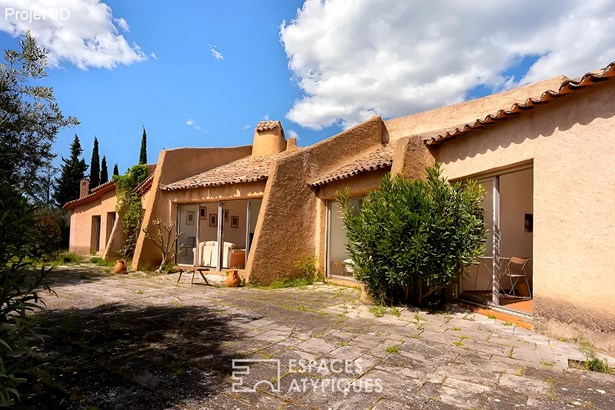 Located in absolute calm, sheltered from view, this architect-designed house built in 1972 unfolds on a single level on a generous plot of 1.18 hectares, in the heart of a green setting in Aups, a charming Provencal village renowned for its art of living.