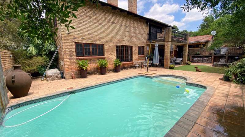 Entertain effortlessly in the downstairs bar area, which spills out onto a patio and the inviting swimming pool. An outdoor built-in braai area ensures delightful gatherings with friends and family. With four bedrooms, three of which are en suite, a dedicated study, and a spacious gym/games/hobby room, this home offers space for every need.