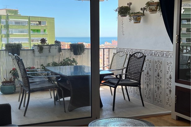 This beautifully renovated apartment Opposite the Swedish School already comes with a tourist license, which can be transferred to the new owner – a perfect opportunity for investment or holiday rentals!Just steps from the beach, this modern and fresh home features a spacious terrace with breathtaking sea and mountain views overlooking Mijas.Located on the 13th floor, the apartment boasts panoramic views and an abundance of natural light. With 96 m² of living space, it offers:3 Bedrooms (one with en-suite bathroom and sea & mountain views, two with mountain views)2 BathroomsFully furnished interiors with a fresh and contemporary designCommunity parking spaceThe complex includes a 50-meter swimming pool surrounded by a beautifully landscaped lawn area, open during the summer season (June–September).The property is set on a charming palm-lined street filled with grocery stores, restaurants, and cozy Andalusian tapas bars offering delicious and affordable local dishes. The
