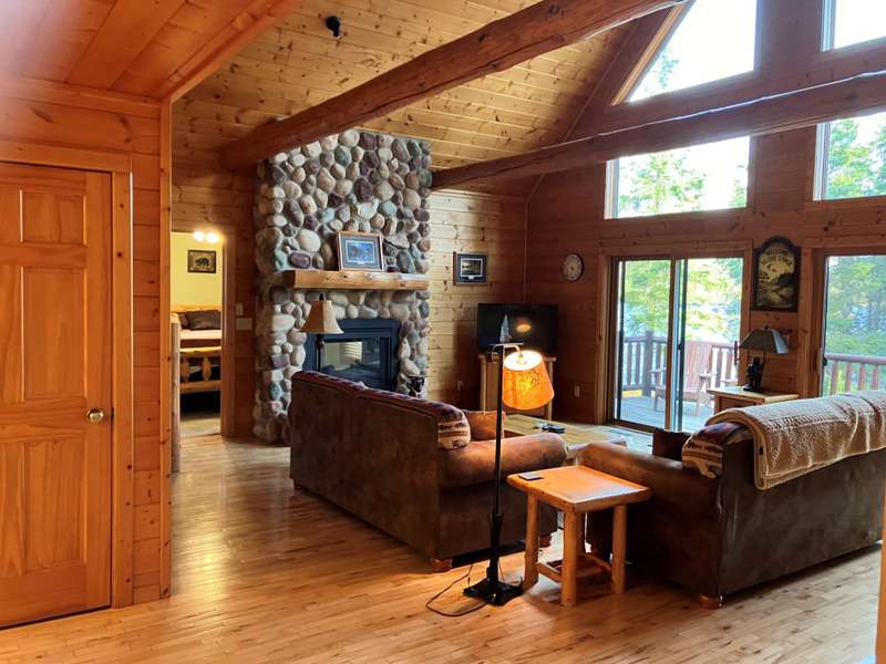 Enjoy the serenity of the Northwoods with this 1/10 fractional ownership opportunity in the Bear's Den log home at Pinestone Crossing, located just 3 miles west of Land O' Lakes. Built in 2010, this beautifully maintained 3BR/2BA condominium home offers 720' of shared frontage on 220-acre Landing Lake. Ownership includes 5 weeks of usage per year, featuring a fixed week in July, plus seasonal weeks in spring, fall, and winter, along with a rotating week. The home is fully furnished in classic Northwoods style and features a gas fieldstone fireplace, screened porch, and spacious lakeside deck. A private storage unit is included. Set on 26 wooded acres, the property offers access to extensive common amenities: walking trails, firepit, screened gazebo, and shared use of pier, pontoon boat, paddle boat, canoe, kayak, and swim raft. This is an ideal opportunity for buyers seeking a low-maintenance, lakefront getaway with year-round enjoyment at an affordable price point.