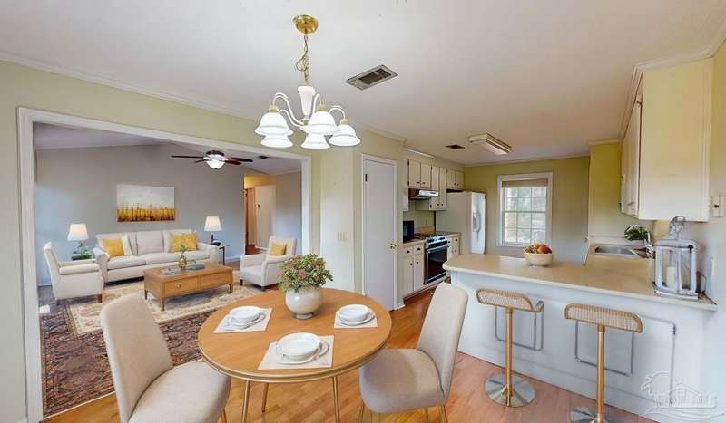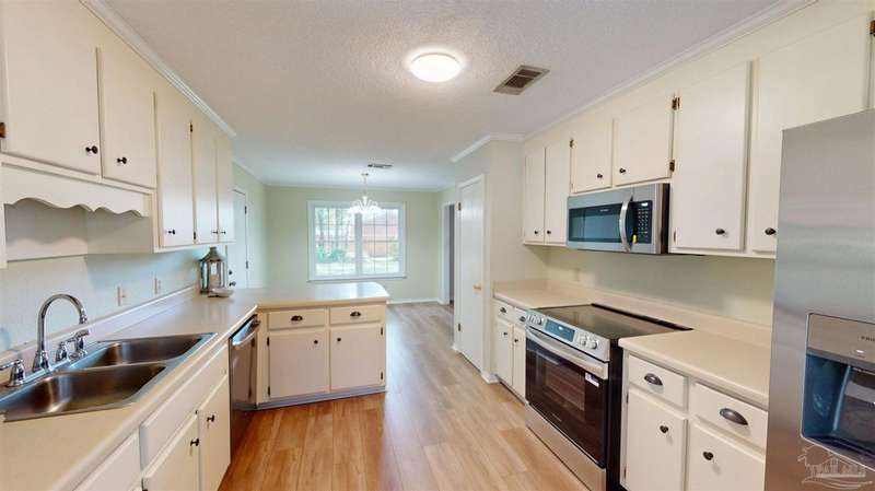 **New Engineered Vinyl Plank placed in foyer, dining and kitchen areas. New Stainless Appliances in kitchen! **Welcome to the peaceful setting of Highland Woods. Located in Pace, this three bedroom, 2 bath brick home sits on over a third of an acre. The home has wood plank tile in the bedrooms and bathrooms. The living room has a great feel with the vaulted ceiling and is also open to the dining room. Enjoy relaxing in the expansive backyard. Great for entertaining while having a Barbecue! Two car garage! Conveniently located to Hwy 90 and Avalon Blvd. Many shops and restaurants nearby. Roof 2021, AC 2019, Rain soft water system. Fantastic opportunity that you won't want to miss! Call for a tour today!