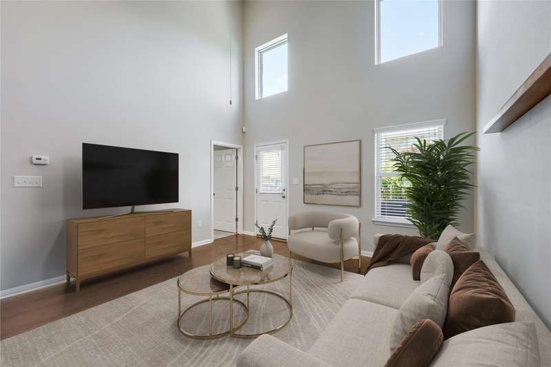 Beautiful and move-in ready, this immaculately maintained 3-bedroom, 2.5-bath condo offers a spacious and flexible layout. The primary suite is conveniently located on the main floor, while soaring ceilings and abundant natural light create an airy, inviting atmosphere throughout. The upstairs features two additional bedrooms and a versatile bonus