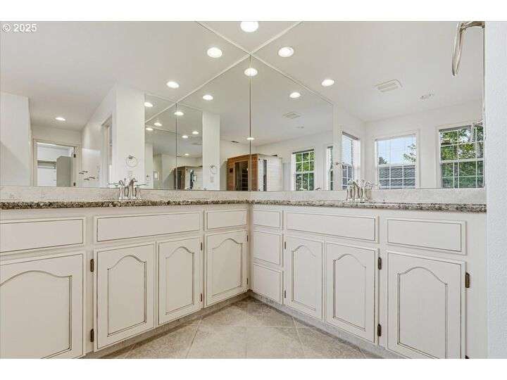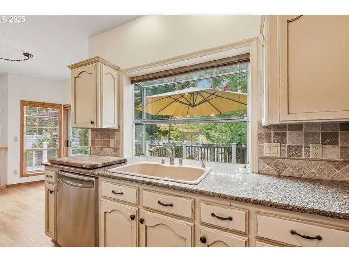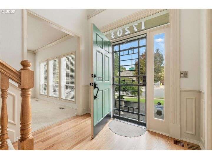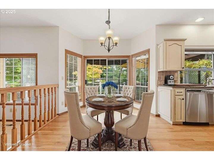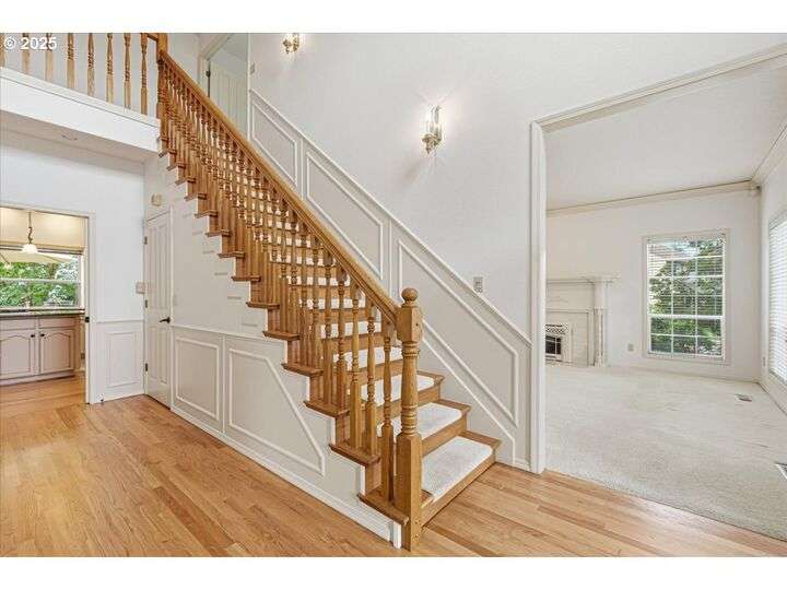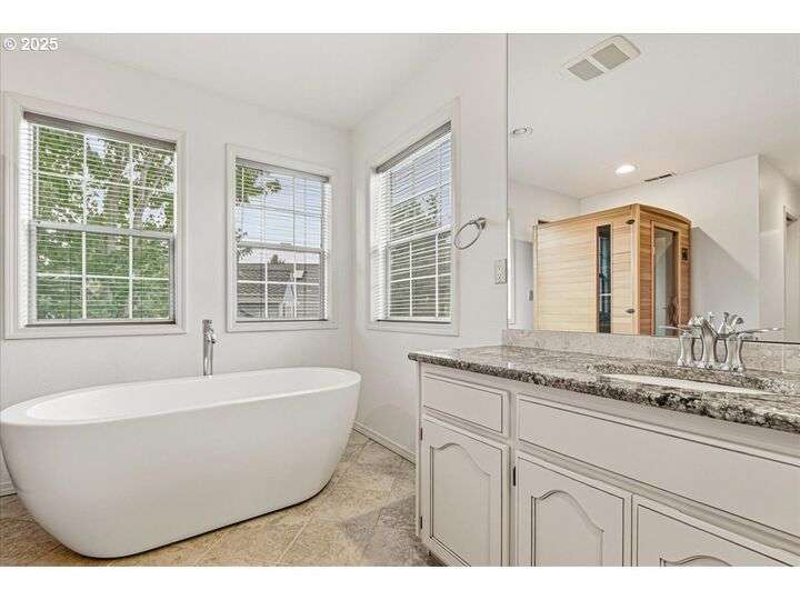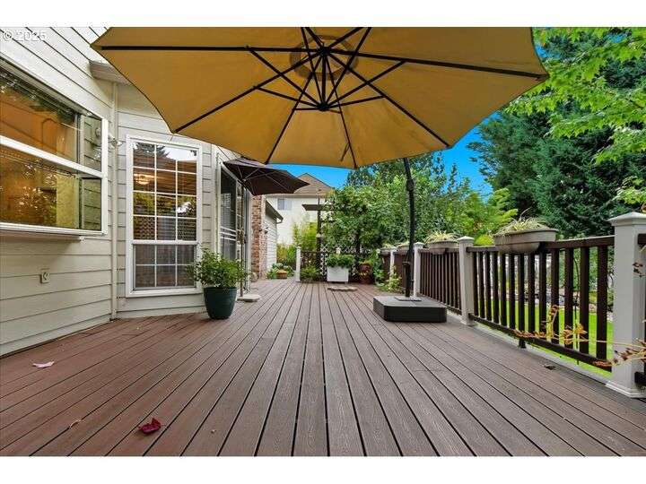 Classic, traditional home on 1/4 acre, corner lot, located in highly sought after Village at Fishers Landing neighborhood. Desirable floor plan meets everyone's needs with 4 spacious bedrooms, oversized upstairs bonus room, and main level den (could be bedroom) with adjacent full bath. As you enter the home you'll be impressed with the dramatic 2 story foyer and open-rail staircase that leads to the 2nd floor. 9' ceilings on the main level and numerous large picture windows make the home feel open, and allow for lots of natural light. The formal living room features beautiful crown moulding and a gas fireplace. You'll enjoy entertaining in the grand, formal dining room, that is graced with wainscoting and French doors open to an expansive covered deck. Gourmet kitchen was remodeled in 2010 and features an abundance of cabinets and counter space, two pantry closets, island with breakfast bar and gas downdraft range, stainless steel appliances, slab granite counters, and spacious informal dining area with a slider to the deck. Floor-to-ceiling wall of built-in bookcases and cozy gas fireplace with hearth anchor the family room. King-sized, vaulted primary bedroom won't disappoint you with remodeled bath featuring heated tile flooring, soaking tub, sauna, water closet with tiled shower, and walk-in closet. Two skylights give the bonus room lots of natural light and it would make an ideal hobby/craft room, office, or play room. Expansive deck in the back yard is a great place to unwind and enjoy the beautifully landscaped grounds and listen to the sounds from the gorgeous water feature with a pond and private patio. Low maintenance composite deck, partially covered by gazebo for yr-rd enjoymen. Oversized concrete RV pad is hidden behind the white vinyl fence with large gate and easy access to the garage. Convenient concrete walkway extends from the deck in the backyard to the side yard where you'll find the raised garden beds, raspberries, and garden shed.