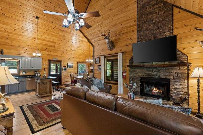 Tucked away in the heart of Blue Ridge's natural beauty, 4 Shalom offers a private mountain retreat in a sought-after gated community. Set on a serene lot with paved roads from start to finish-perfect for motorcycles and mountain cruisers-this home blends comfort, convenience, and adventure. Inside, you'll find three bedrooms thoughtfully arranged on separate levels, giving everyone their own private space. The kitchen has been updated with striking new granite countertops and freshly painted cabinets, while all major appliances remain under warranty until spring 2026-adding confidence and value for the next owner. Downstairs, new plush carpeting creates a warm, inviting feel in the game room and bedroom, ideal for cozy nights or family fun. Practical features include a small garage for motorcycles, ATVs, or mountain toys, plus an RV parking pad with accessible power. Offered fully furnished, this home is truly turn-key, making it an excellent short-term rental investment or personal mountain escape. Beyond the home itself, residents enjoy a private community common area along the sparkling Toccoa River-perfect for fishing, tubing, or simply relaxing by the water. And just minutes away, the charming town of Blue Ridge awaits with its award-winning wineries, craft breweries, and gourmet restaurants, offering a perfect balance of rustic adventure and refined indulgence. Whether you're seeking a private getaway, an income-producing property, or a home base for endless North Georgia adventures, 4 Shalom delivers a lifestyle where mountain living meets modern comfort.
