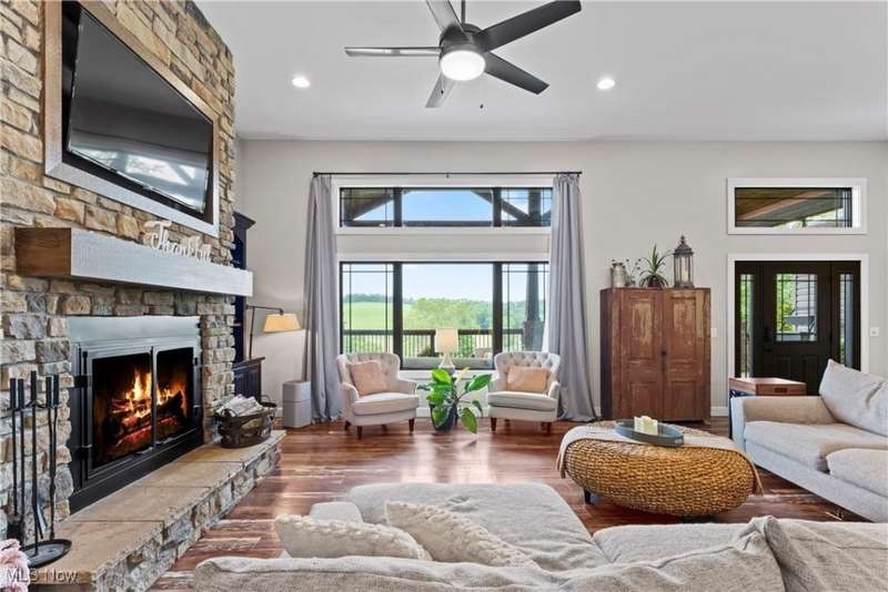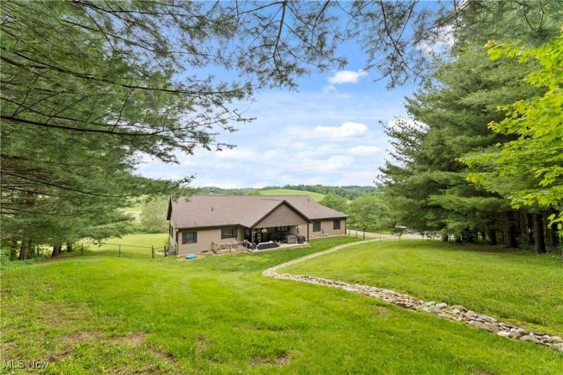 A Country Retreat You Could Only Dream Of! 14+ Acres Nestled in the Most Picturesque Hillside Setting This stunning custom-built high-end ranch offers sunset views so breathtaking, they rival anything you've seen on the big screen. Every inch of this 5-bedroom, 3.5-bath home is designed for comfort, function, and unforgettable moments. The owner originally purchased the home with 6.5 acres, then later acquired the three additional buildings on 2.6 more acres, followed by later purchasing an extra 5 acres out back. Today, this incredible retreat spans approximately 14.11 acres across two parcels, offering space, seclusion, and so many possibilities. Inside, you'll find soaring ceilings with exposed beam, a chef's dream kitchen with a spectacular island and beautiful cabinetry, and a gorgeous stone fireplace flanked by built-in bookshelves that add warmth and charm. Spacious custom closets can be found throughout, while radiant heated floors warm the lower level. Even the family dog is treated to a built-in dog wash station in the laundry room! Step outside to your own private oasis?featuring a hot tub (negotiable) on the covered back porch, a massive front porch perfect for rocking chairs and slow mornings, and a walk-out lower patio ideal for entertaining under the stars. This rare property also includes: 24x32 Party Barn with a fully equipped apartment (full bath, laundry hook-up, heating & air) 32x50 Garage/Workshop with tall doors, concrete floors, pellet stove, electric, and water plumbed in 11x22 Shed with concrete floor for even more storage Venture into the tall pines out back, where trails wind through your land?perfect for hiking, ATVs, or horseback riding (just needing a bit of trimming to reopen the adventure). Approximate drive times: 30 minutes to Newark,14 minutes to Dresden,15 minutes to Coshocton, 25 minutes to Zanesville, 1 hour to the airport,6 minutes to Killing Tree Winery