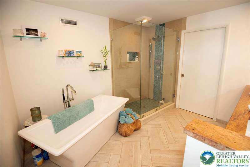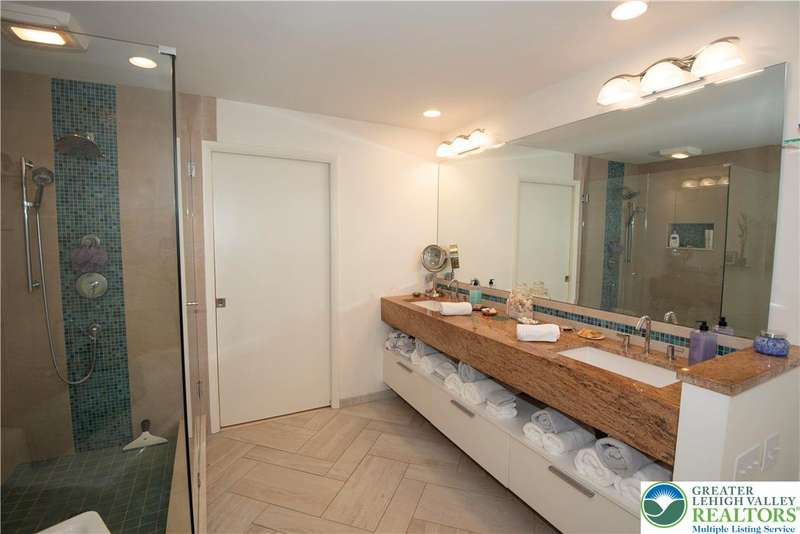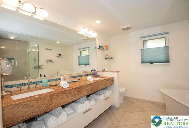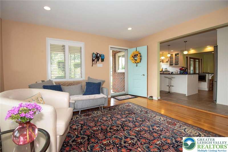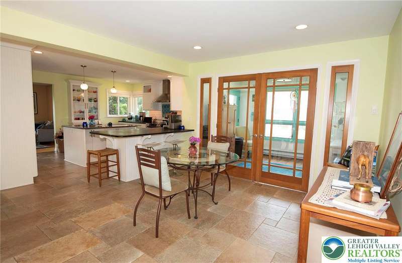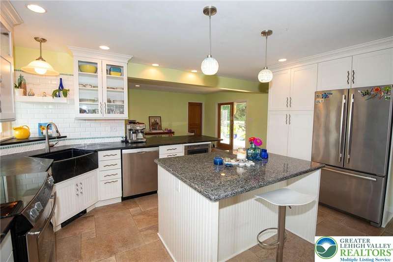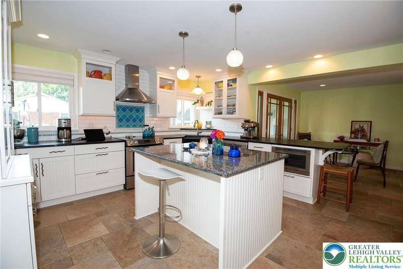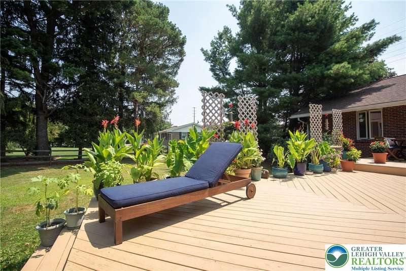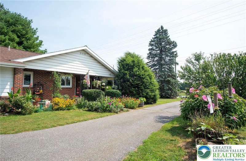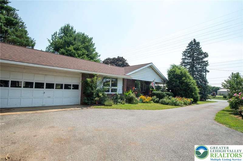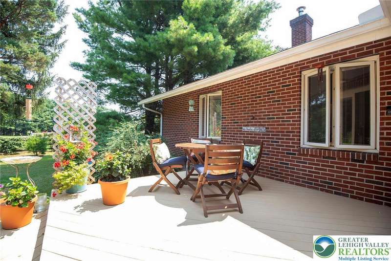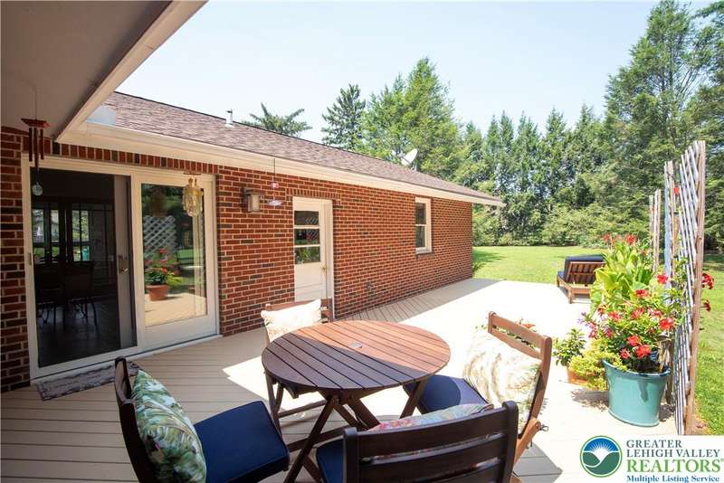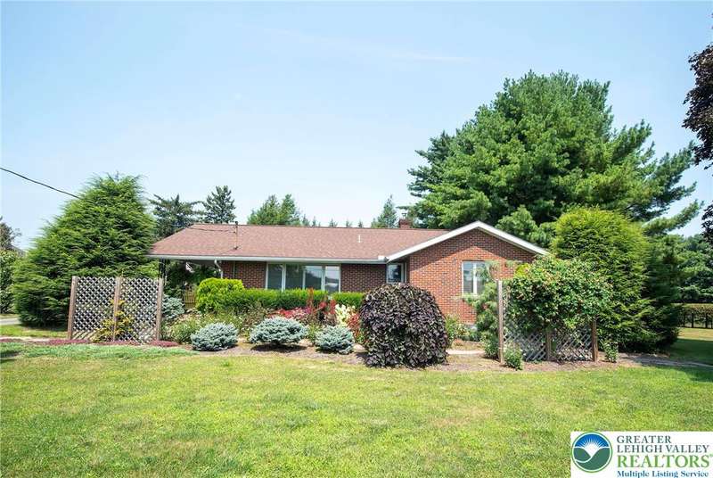 FANTASTIC OPPORTUNITY FOR AN UPDATED, WELL MAINTAINED, BRICK RANCH IN EAST PENN SCHOOL DISTRICT!!! Situated on a professionally landscaped, almost acre lot, this home will not disappoint!!! Enter from the covered front porch to a spacious, light-filled Living Room w/gleaming oak hardwoods and custom plantation shutters. Proceed to the CUSTOM open-concept Kitchen, by Kitchen's By Design, w/white cabinets, tile BS, Soapstone perimeter counters, large granite-top island (seats 4), Peninsula (seats 4), and all SS appliances included! Kitchen is open to the Dining Area w/oak HW floors and slider access to a newer, private deck, and fenced yard, PLUS French Door access to an Office/Sunroom w/bamboo floors and separate entry. The main level is rounded out w/more Oak HW floors, a Primary Bedroom w/1/2 bath, 2 additional Bedrooms and a STUNNING, ENLARGED "SPA BATHROOM", replete with double sinks, tiled walk-in shower, and ceramic soaking tub! The lower level boasts of a Family Room w/brand new luxury vinyl flooring, and included shelving, possible 4th bedroom, laundry, new shower stall, storage and Bilco access! A deep, 2-car ,garage, 2-car parking pad and driveway allow plenty of parking! Updates include newer Anderson windows, newer deck, Roof 2021, newer septic 2019, new Boiler 2018, TWO water heaters 2017, 200 AMP electric 2014, and ALL CUSTOM Hunter Douglas window treatments, included!! Easy access to walking trails, shopping, travel routes, and amenities! Check it out ASAP!!!