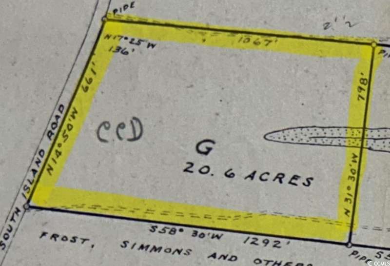 This 20.6-acre tract, ideally situated at the corner of South Island Road and Herriott Farms Drive, presents the perfect location for your private retreat. Just minutes from Historic Georgetown, South Carolina, this expansive parcel offers close striking distance to numerous outdoor activities and captivating historical sites. Its strategic location provides exceptional accessibility: Charleston is less than an hour's drive to the south, while the beautiful beaches of Pawleys Island and the vibrant attractions of Myrtle Beach are not far to the north. Boating enthusiasts will appreciate the convenience of multiple public boat launches nearby. The Ferry Landing, just minutes to the south, is capable of accommodating many boaters at once and provides ample parking. Even larger is the Carroll Campbell boat launch, closer to town, offering even more accessibility. Here, you'll find yourself surrounded by nature, historic plantations, and vast green spaces, providing a serene and picturesque environment. This tract offers the ideal setting for a homestead, with plenty of room to share with loved ones you'd like as neighbors, making it a truly exceptional opportunity. Along South Island Road the property has approximately 798 feet and down Herriott Farms Drive another 1291 feet roughly.