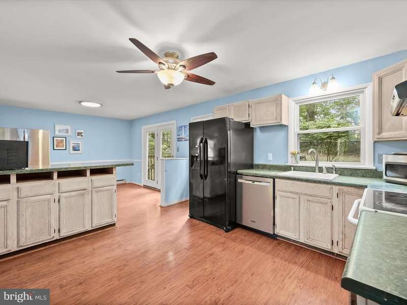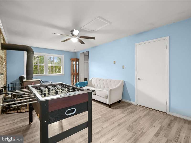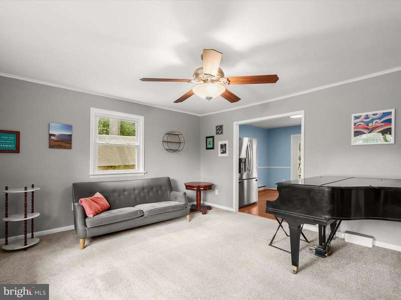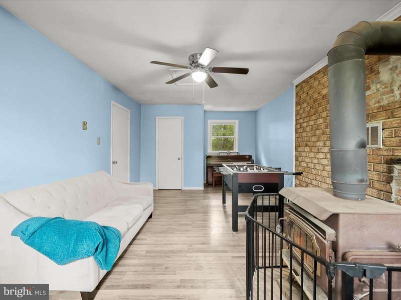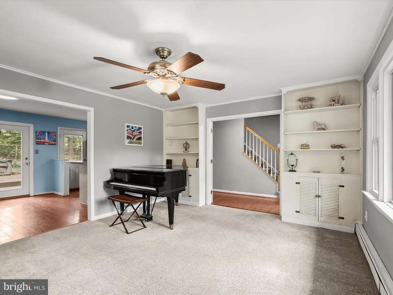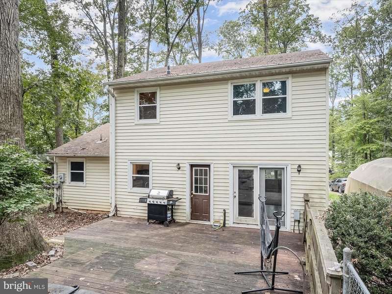 This charming three bedroom, one-and-a-half-bathroom home is perfectly situated on a 0.63-acre wooded lot, offering both privacy and a serene connection to nature. A long driveway and beautifully maintained landscaping create a welcoming first impression. Inside, a bright foyer leads through French doors into a sunlit living room, adorned with crown molding and built-ins. The dining area, accented with elegant chair railing, flows seamlessly into a kitchen with ample counter space and direct access to a spacious rear deck. Perfect for entertaining, the deck features a relaxing hot tub and overlooks a large, fully fenced backyard, which also includes a shed with electricity. A cozy family room provides a warm retreat, highlighted by a wood stove set against a charming brick wall. The main level is completed by a convenient half bathroom. Upstairs, all three bedrooms feature new carpet and share a full bathroom with a tub-shower combination. The lower level offers generous storage, coal stove and laundry. Recent updates include new ceiling fans, fresh paint, new carpet and flooring, a water heater replaced just one year ago, new landscaping, a concrete-covered carport, and a UV water filtration system, making this home move-in ready and thoughtfully maintained.