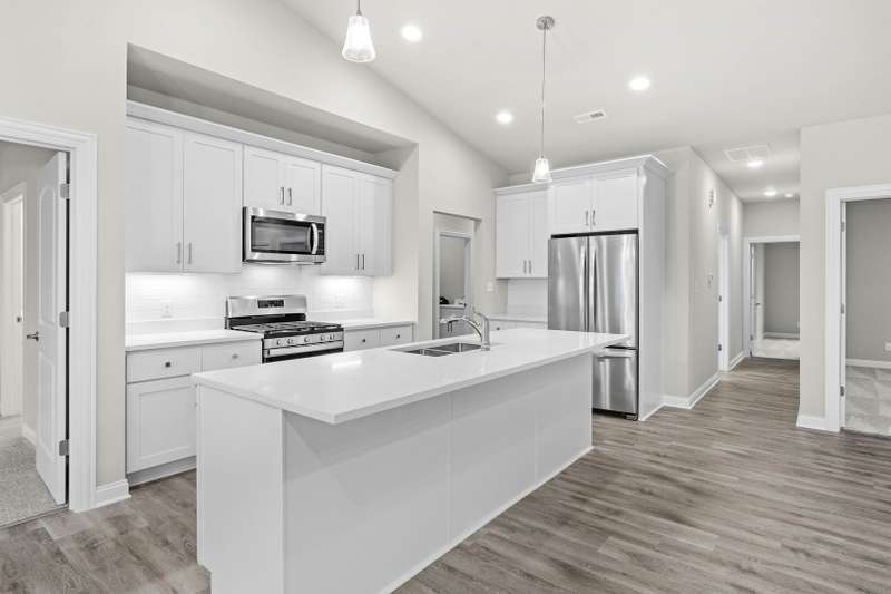 READY NOW! Our custom-built paired villas boast 3 spacious bedrooms, one with a flexible office setup. Open concept great-room, kitchen island, stainless steel appliances, and premium Silver Line windows that fill the 1500 square feet of living space with natural light. 3 homes (Juniper Floor Plan) are ready now, with more homes, POND LOTS, and new designs getting ready to begin construction! These Custom-Built Villas are packed with quality finishes, and future pre-sold units offer plenty of selections for owners who want a more customized home. Finished homes include Luxury Vinyl Plank, Tile, and Carpet Flooring. Kitchens with Quartz Countertops, soft-close cabinets and drawers, stainless steel kitchen appliances, laundry room with washer & dryer, Ceiling Fans in all Bedrooms and Great Room, Rubbermaid closet shelving, and stone masonry accents. In Future pre-sold homes, enjoy the vinyl planking floors throughout, or choose to have carpeting in the bedrooms. You'll appreciate the comfort of a finished, insulated garage, & the convenience of an over-sized back patio with options for enclosed finishes. Designed for a carefree lifestyle, these maintenance-free homes offer the perfect blend of comfort and sophistication. Virtual Tour from Sales model with same layout.