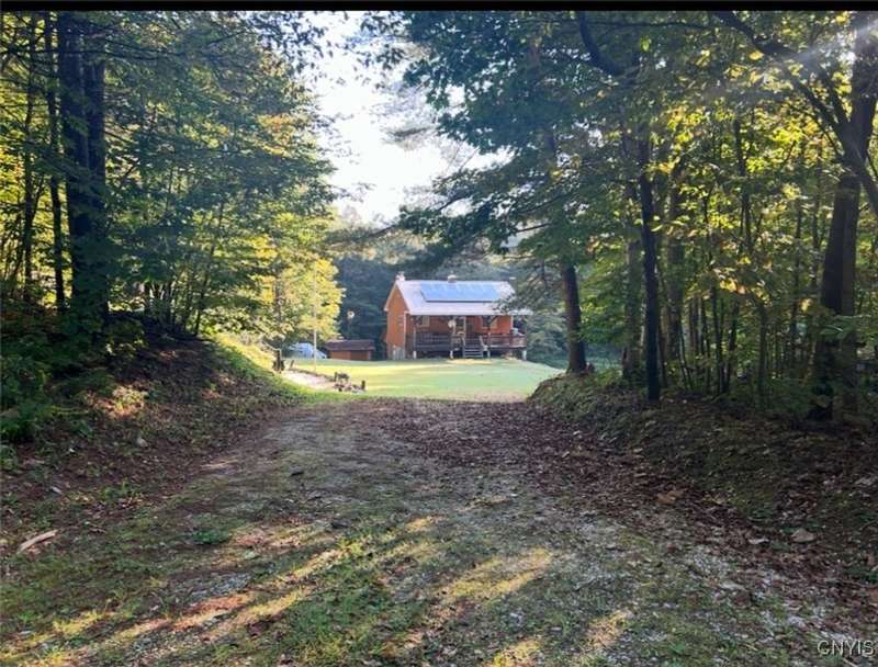 Escape to nature in this comfortable and fully equipped off-grid cabin, nestled near the serene shores of Yellow Lake in Saint Lawrence County, renowned as one of the best bass fishing lakes in the region. Whether you're into fishing, hunting, hiking, cycling, or winter sports, this property is a perfect year-round base for outdoor adventures.Set on over 28 private, forested acres across two adjoining plots, this retreat offers unmatched privacy and tranquility with access to the water. Located on a private road with deeded lake rights and full Yellow Lake access, you'll enjoy peaceful mornings on the water and endless recreation outside your door.This well-maintained home is thoughtfully outfitted for off-grid living with solar power, a drilled well, and a full septic system. The main level features an inviting open-concept layout with a full kitchen and bar, cozy living space, private bedroom, and a convenient half bath. Step onto the spacious covered front porch to enjoy sweeping views and fresh lake air.The finished lower level includes a bunkroom for extra guests, a workshop area, and a full bathroom, making it a functional and flexible space for hosting, hobbies, or gear storage.This property is equipped with solar panels that include backup battery storage, providing reliable and energy-efficient power year-round. For added peace of mind, a gas-powered generator is also included with the sale, offering an additional layer of backup power when needed. A small on-site shed houses a dedicated gas tank for the generator, ensuring easy access and seamless operation of power.Though you'll feel a world away, this cabin is easily accessible?just minutes off Interstate 81, and centrally located between Watertown, Alexandria Bay, and Gouverneur, NY. Whether you're looking for a peaceful retreat, a basecamp for outdoor excursions, or a secluded spot to unwind, this unique property has it all.Don't miss your chance to own a slice of wilderness with modern comforts and full lake access?schedule your private showing today!