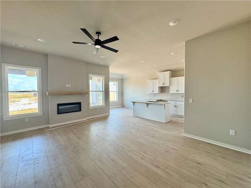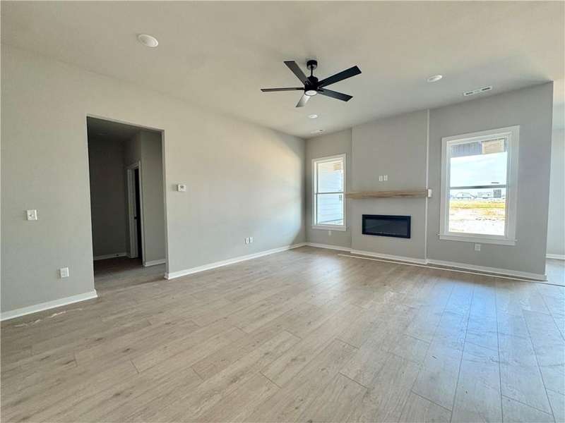 Discover your dream home in the sought-after Osage Hills neighborhood. Benton plan with garage on the left and South facing! 10 ft ceilings in the living/kitchen area, linear electric fireplace in the living, 1 level, LVP flooring throughout the main living areas and primary bedroom, quartz countertops and more. Chef's kitchen boasting frigidaire stainless steel appliances, gas range, pantry, quartz countertops, bar pull handles, large island and gorgeous backsplash. Luxurious primary bedroom features abundant natural light, while the spa-like primary bathroom offers a walk-in shower, double sinks, and spacious walk-in closets. Additional features include three large secondary bedrooms and a separate laundry room. Nestled on a generous lot with covered patio that overlooks the serene sodded, fully fenced backyard. Model home located at 6008 SW Coywolf St- Lot 122.