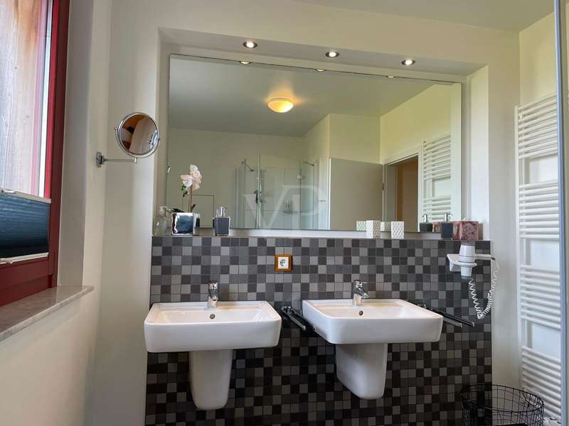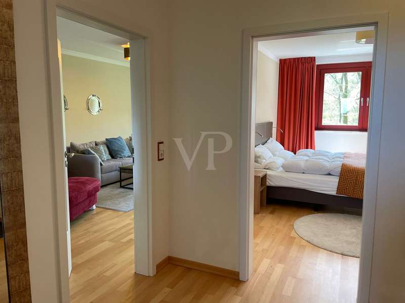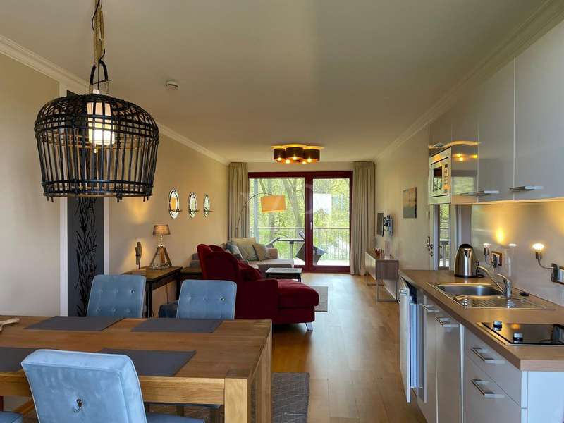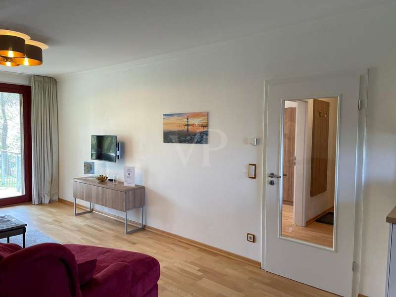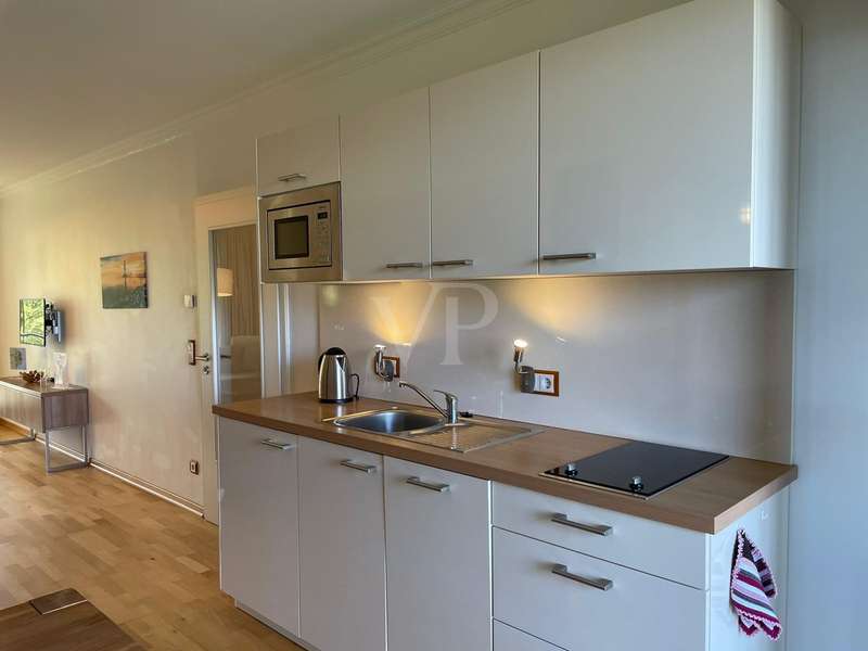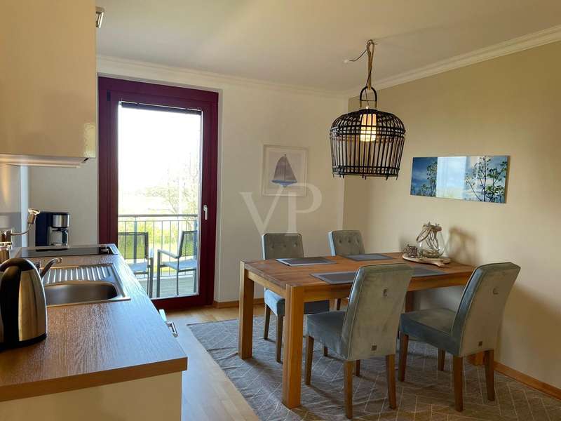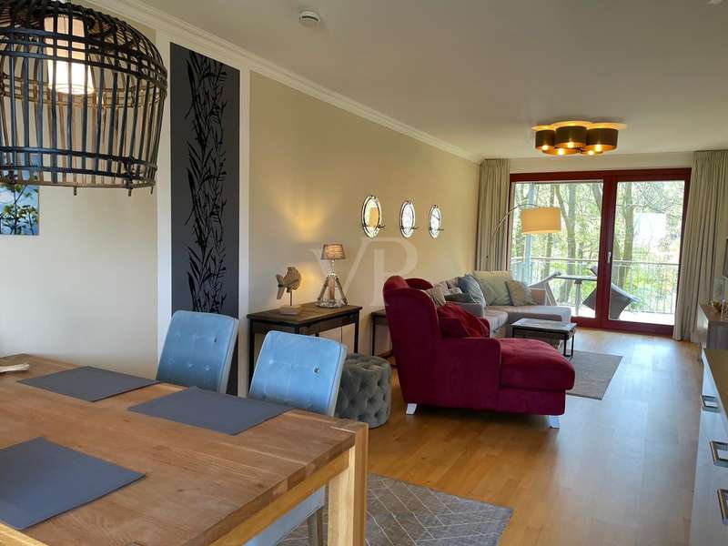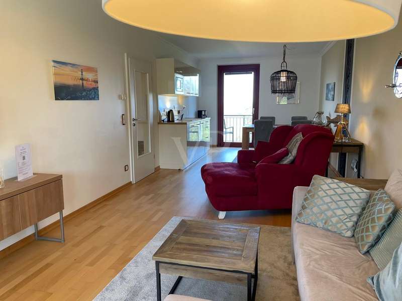 This modern 2-room vacation apartment with a living space of approx. 68.13 m² is located on the grounds of the exclusive Schlosshotel Ranzow, between the Baltic Sea and the national park. Schloss Ranzow has its own 18-hole golf course, which fulfills all the wishes of golf enthusiasts. golf enthusiasts. From golf lessons and golf tournaments to golf courses, everything is on offer. The Schloss Ranzow golf course stretches right up to the edge of the striking cliffs in the north of Rügen with a magnificent view of the Baltic Sea. The Fore apartment house was renovated in 2022 and the Fore house is clad in fine larch wood. The highlight of this property are the two balconies with floor-to-ceiling panoramic windows, from which you can enjoy a fantastic view of the sea, the golf course, the national park and the castle park. The exclusive vacation apartment has an open and light-flooded interior design that offers a special living experience. Fore House is located directly on the golf course with a view of the Baltic Sea and the high-quality interior design of the apartment ensures comfort and a feel-good atmosphere. The fully equipped apartment has a separate bedroom, an integrated kitchenette, a large bright shower room with double washbasin and a spacious hallway with storage area. The apartment is partially refurnished and a furniture package is included in the purchase price, allowing immediate occupancy. The living area offers a comfortable couch, a flatscreen TV, a dining area and a fully equipped kitchenette. The bedroom has a comfortable double bed and the bathroom is equipped with a shower and WC. Other features include WLAN, cable connection, laminate flooring, tiles and a storage room. The complex has an outdoor BIO infinity pool and a wellness studio with three saunas, where massages and health-promoting baths are available for an extra charge. A fitness room is also available to residents. The pool can be used for an additional charge, but the use is not subject to the house fee. The castle restaurant EARL spoils guests with culinary delights and the Schlosshotel Ranzow offers the option of renting and looking after the apartment. The reception can organize cleaning and other services on request, and it is possible to conclude an agency agreement with the Schlosshotel. A parking space is included in the purchase price. Overall, the vacation apartment presents itself as an exclusive hideaway in the middle of an idyllic landscape with numerous leisure and relaxation options. With its modern furnishings, fantastic views and the amenities of the golf course, it offers the perfect retreat for a relaxing vacation by the Baltic Sea. Are you interested in this exclusive property? Arrange a viewing today and let yourself be enchanted by this unique apartment.