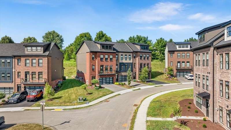 Stunning professionally designed 3BR, 2.5BA luxury end-unit townhome in Peters Twp?better than new! Just 3 years old, this Infinity-built home boasts high-end finishes, with numerous custom upgrades, lighting and finishes throughout. Enjoy a spacious entry with a versatile office/den/gameroom and stylish 2-sided staircases with designer runners. The bright main level features high ceilings, rich hardwood floors, and an open gourmet kitchen with a massive island, sleek cabinetry, creamy quartz counters, upgraded hardware, and extended cabinetry into the light-filled family room. Dining nook opens to a private back patio. Upstairs: a serene, spacious primary suite with 2 closets and an upgraded en-suite bath, plus laundry, 2 large bedrooms, and a full bath. Includes an integral 2-car garage. Located just minutes from shopping, dining, and parks, this low-maintenance home offers upscale, luxurious living in the heart of the South Hills!