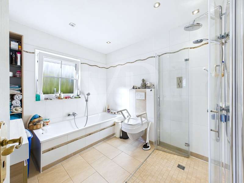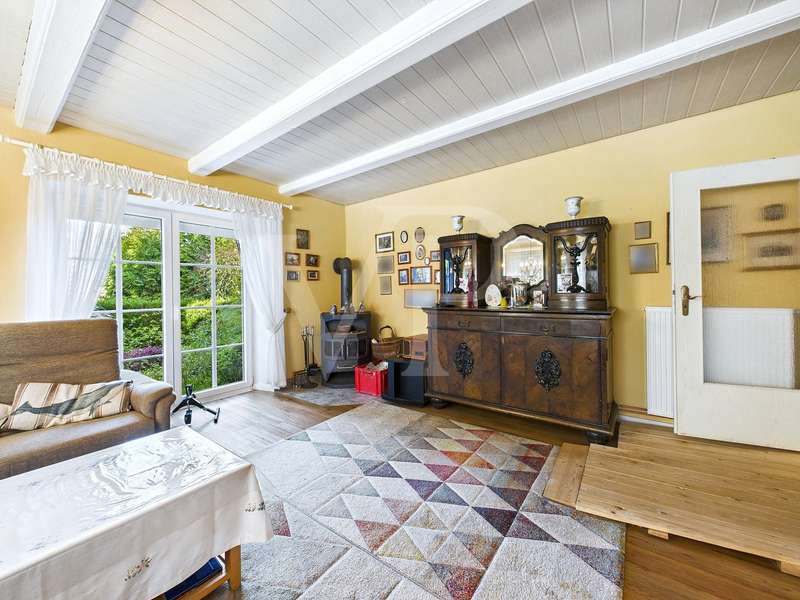 This charming and spacious detached house on an impressive 4,505 m² plot with beautiful, ingrown plants and trees - a real paradise for nature lovers! The house was originally built in 1900 and extensively renovated in 1987. It offers a total living space of approx. 199 m² on the first floor, which is divided into the main living unit (approx. 139 m²) and a separate granny apartment with approx. 60 m² - ideal for multi-generational living, guests or for renting out. The layout on the first floor impresses with its generous room design. The modern bathroom was completely renovated in 2016 and offers contemporary comfort. The heating systems were also renewed - in 2017 in the main apartment and in 2024 in the granny apartment. A special highlight is the upper floor with approx. 140 m² of expansion space - the insulated roof already creates a good basis for additional living space, just as you wish. The property is currently only inhabited on the first floor and therefore still offers many possibilities for expansion and individual design.