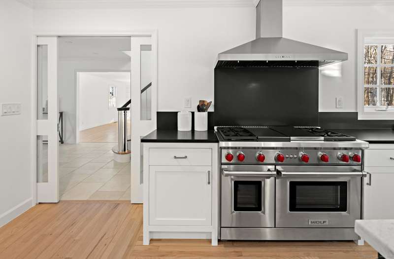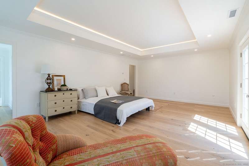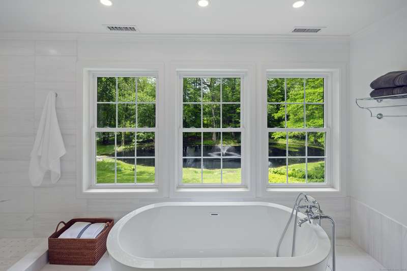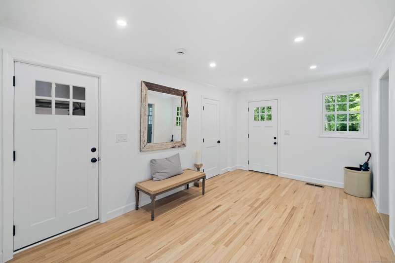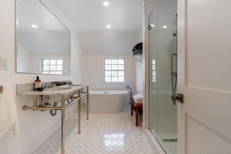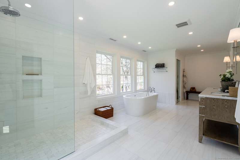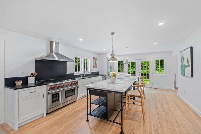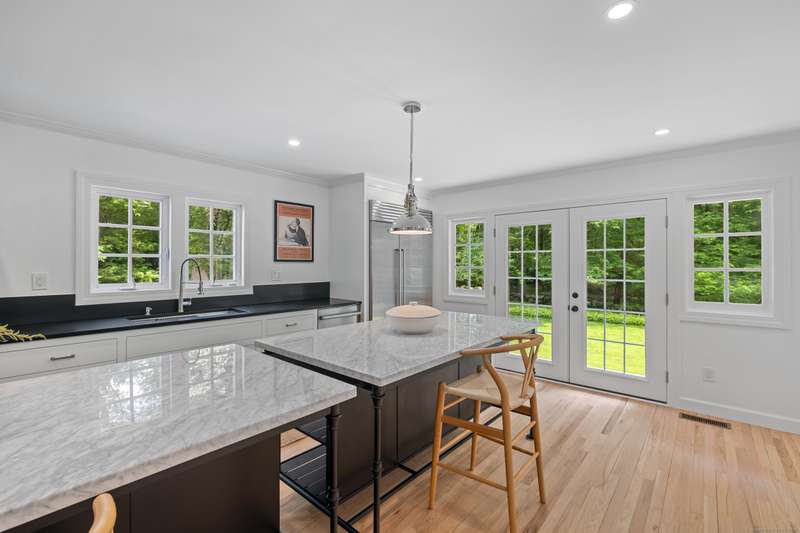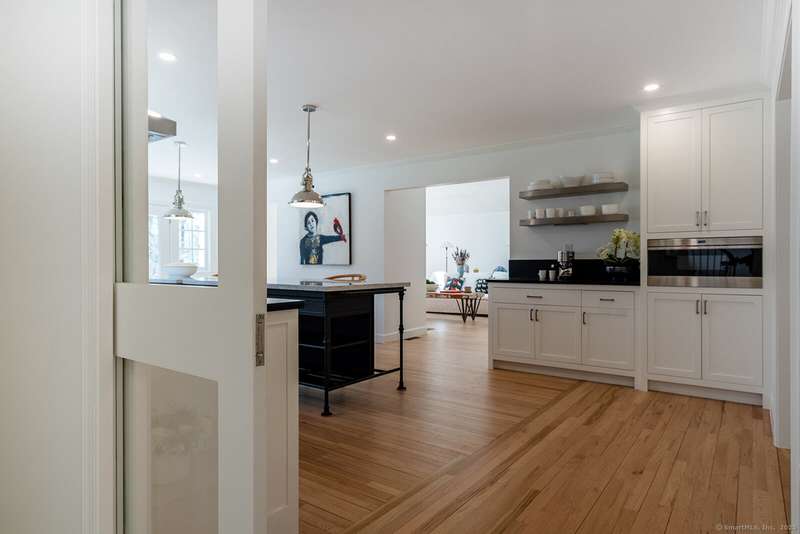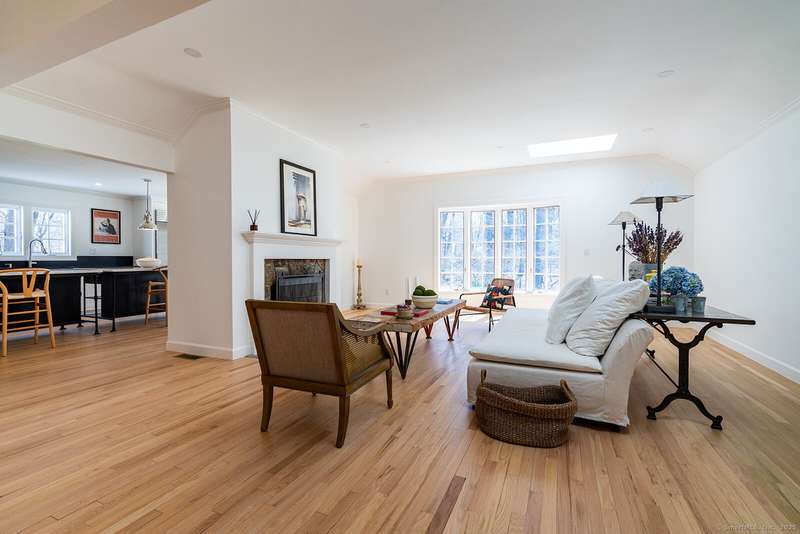 Modern Elegance Meets Timeless Charm in Prime West Side Location. Welcome to the one you've been waiting for-where location, lifestyle, and luxury converge. Perfectly situated on 2 lush acres in a quiet neighborhood minutes from New Canaan village, this completely reimagined five-bedroom, four and a half bath home is the epitome of turnkey sophistication.Property Highlights include:The new gourmet kitchen boasts double islands, top-tier appliances, a walk-in pantry, and a classic-modern aesthetic. It opens to a generous family room filled with natural light, while a formal dining room is conveniently adjacent.Primary Suite: Upstairs, the spacious primary suite addition includes a balcony, sitting area, enormous walk-in closet, and a spa-like bathroom with a soaking tub overlooking the property. The second level also offers four additional bedrooms, a home office, and a laundry room. A large finished basement with a fireplace, wine fridge, and extra space for recreation provides additio
