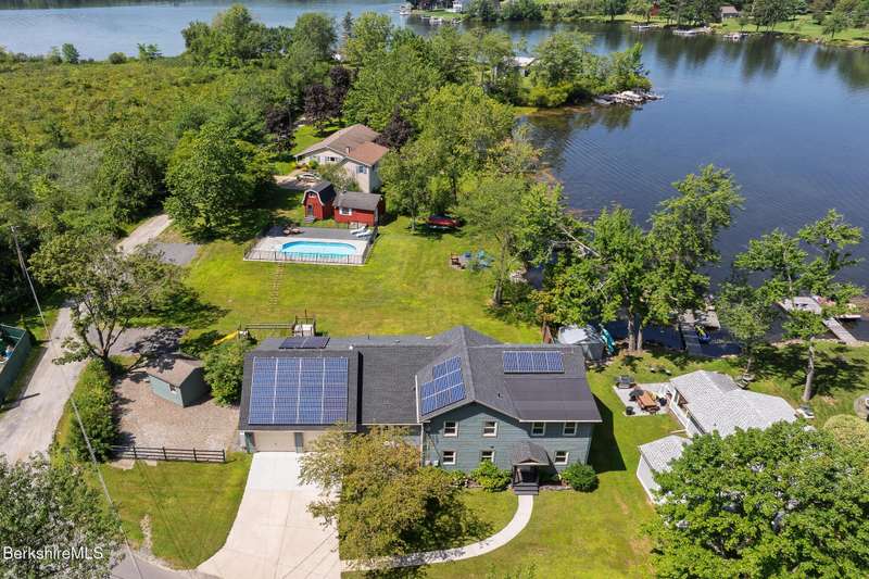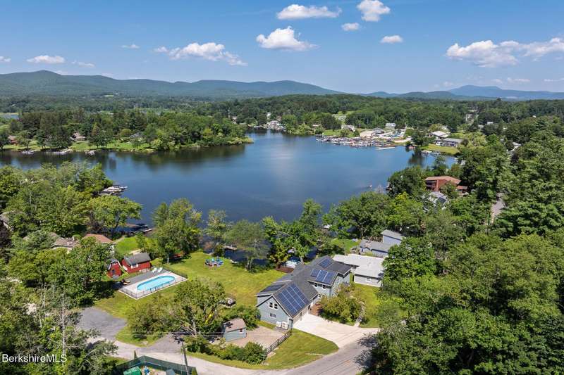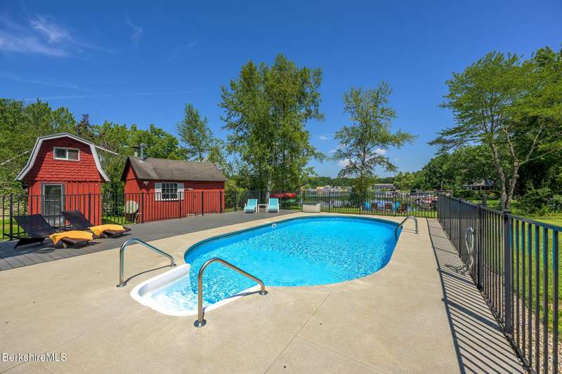 This exceptional lakefront retreat offers it all! Nearly 100 feet of eastern shoreline, private dock, and shimmering in-ground pool. Inside, a beautiful kitchen flows into living spaces with lake views from nearly every room. The first floor also features a spacious living room, dining area, play/relaxation room, office with custom desk/Murphy bed, and full bath. Upstairs, the luxurious primary suite boasts a spa-like bath with soaking tub overlooking the water and mountains. Two additional bedrooms plus a fabulous new bonus/bunk/game room complete the home. Numerous upgrades including central air conditioning were designed to provide the utmost in comfort. Whether hosting on the deck, relaxing by the pool, or watching spectacular sunrises from the dock, every moment here is pure bliss! Victoria A Standring victoria@lamacchiarealty.com 413-822-5363 LAMACCHIA REALTY, INC