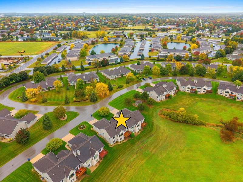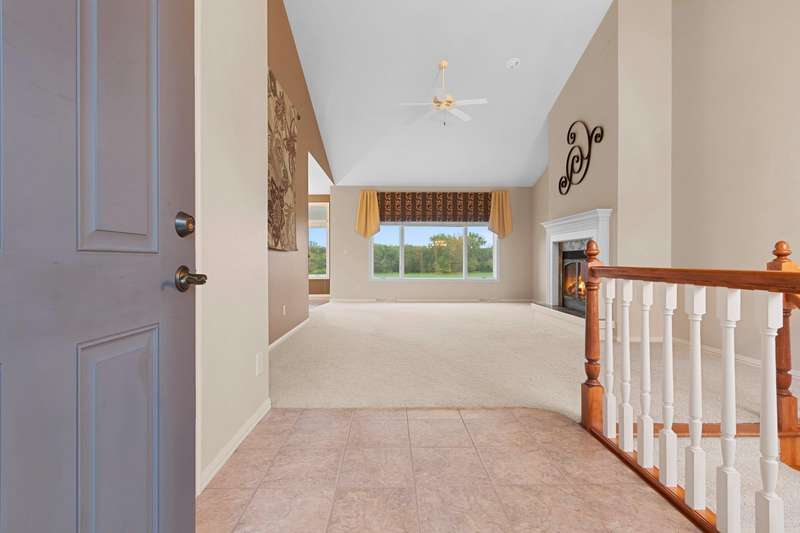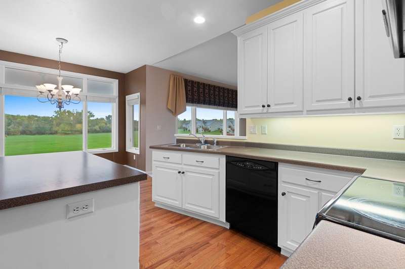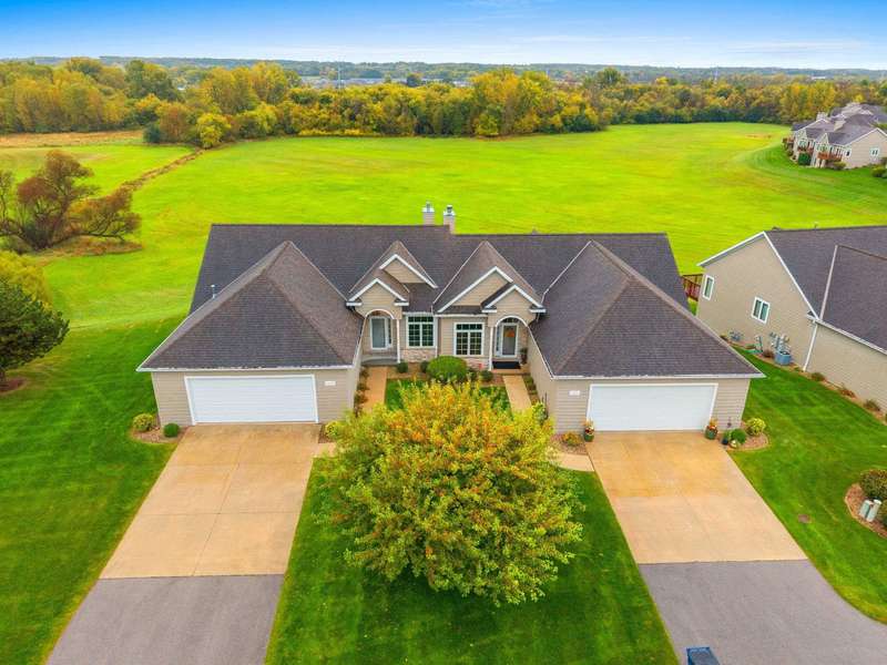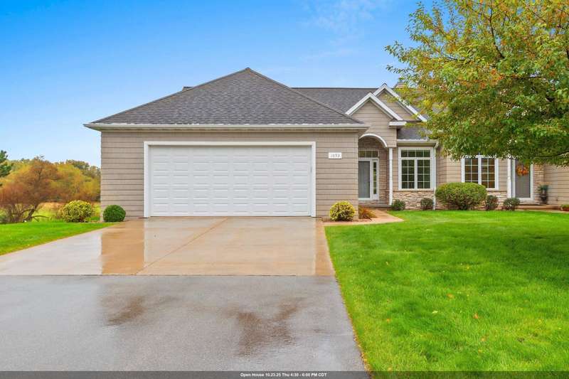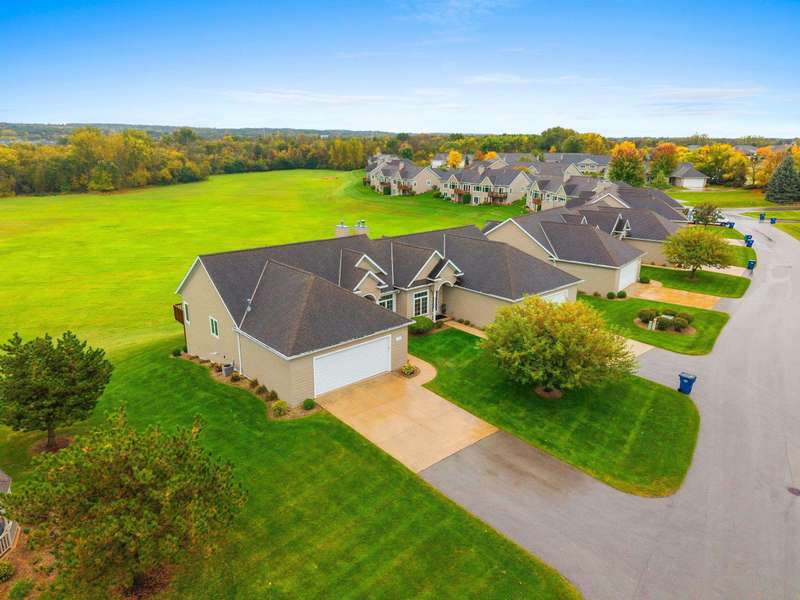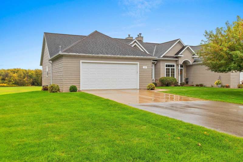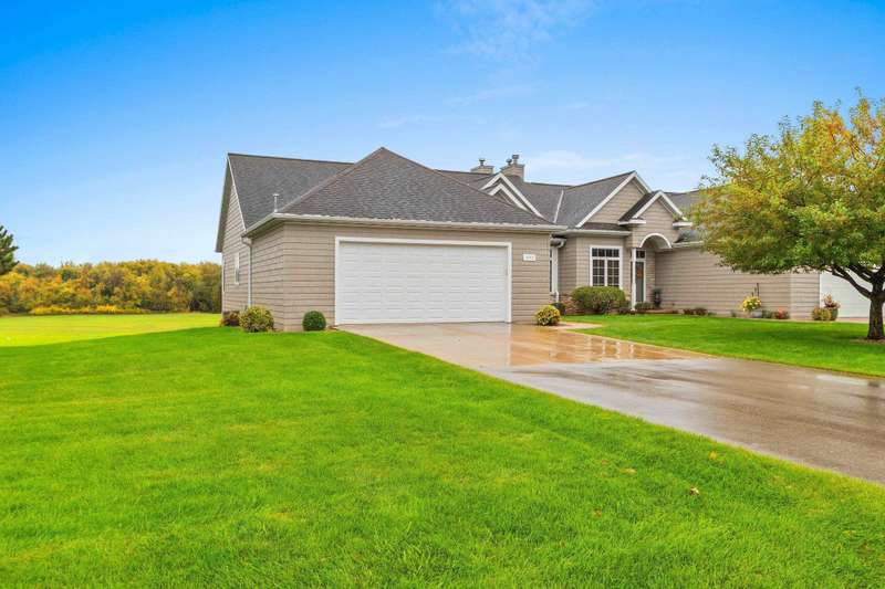 Sought-after De Pere Condo! This one-owner corner unit offers privacy, beautiful views, and generous living space with 2,386 sq ft. Overlooking a picturesque ravine and surrounded by green space, this home features 3 bedrooms and 2.5 baths. The kitchen includes raised panel cabinets, a center island snack bar, and an open layout perfect for entertaining. The primary suite offers a tray ceiling, walk-in closet, and private bath. Enjoy relaxing in the great room with a cozy fireplace or in the walk-out lower level featuring a spacious rec room and egress windows. A 9-ft patio door opens to a peaceful outdoor setting. Additional highlights include a heated garage with water and quality craftsmanship throughout.