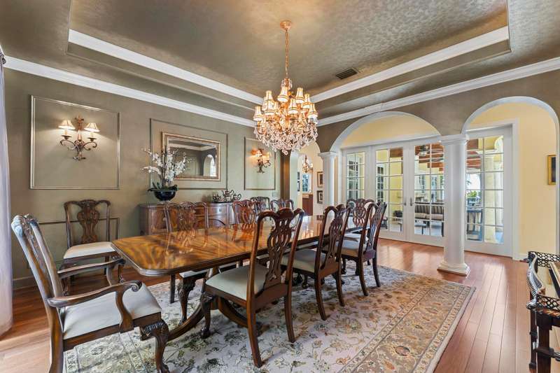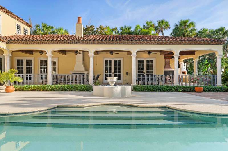 Under the shade of mature oaks and cypress trees is a piece of Italy in Sewall's Point. Located on a private drive in North Sewall's Point on a rare piece wide waterfront land, Villa Loggia was crafted as an escape to the Mediterranean. Deep water access will allow the largest of vessels. Downstairs, a mahogany clad office holds a thrilling secret: A temperature-controlled wine cellar welcomes your collection. Kitchen is the heart of the home with double island, family table area, and living. An elevator brings you one of the largest owner's suites in Sewall's Point. Grand closet, spacious bath, abundant storage, and walkout balcony. En-suite bedrooms with sitting area complete the upstairs. Full impact windows and doors, true 3 car garage, generator, large laundry and rod storage. Grand