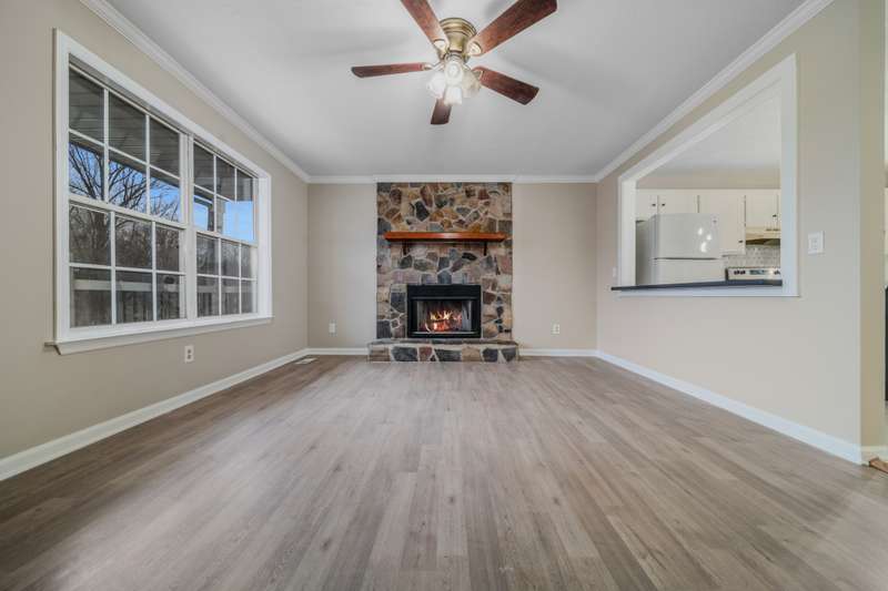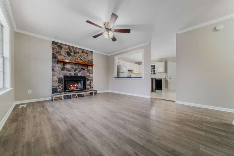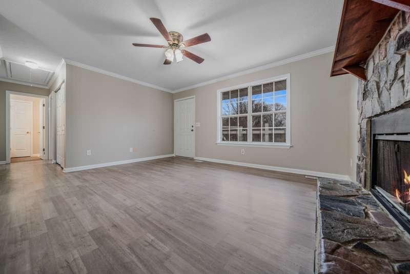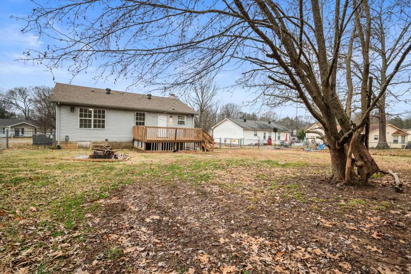 UNDER $340,000, this single-level family home in La Vergne has no HOA. It features three bedrooms, two full bathrooms, an updated kitchen with a modern backsplash and marble flooring, fresh paint, updated LVP flooring throughout, and a cozy fireplace. The roof is less than five years old, and the deck is under a year old. Step outside to a spacious fenced backyard, perfect for entertaining. It's conveniently located just a short drive from restaurants, shopping, and the interstate. Book your showings today.