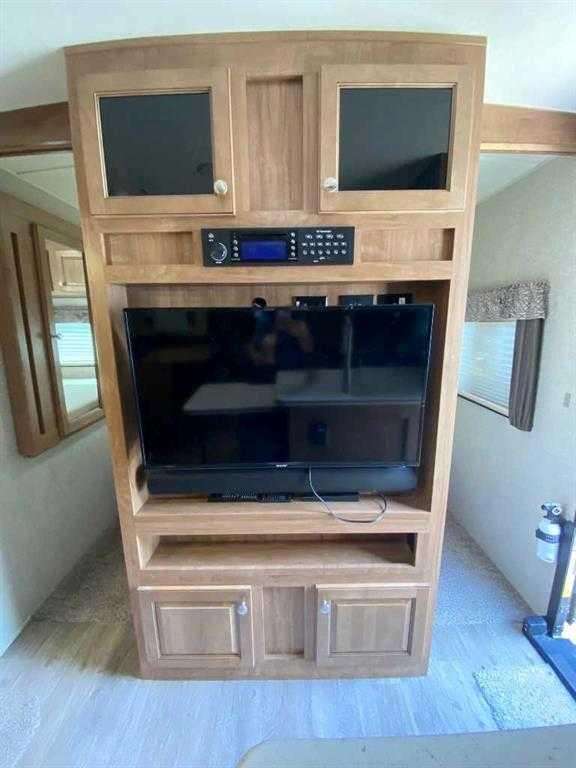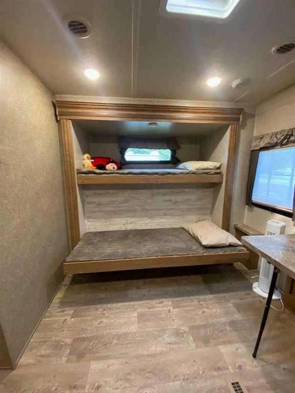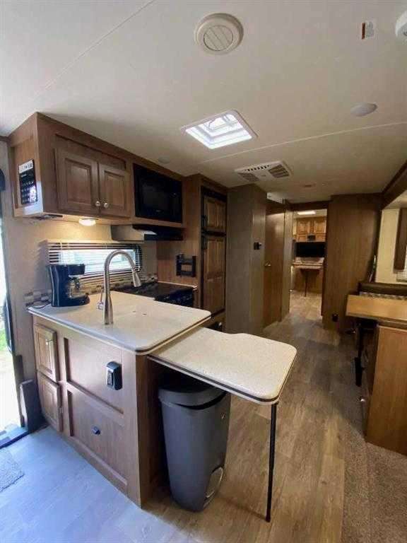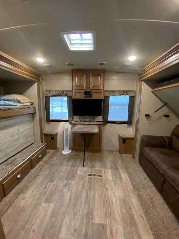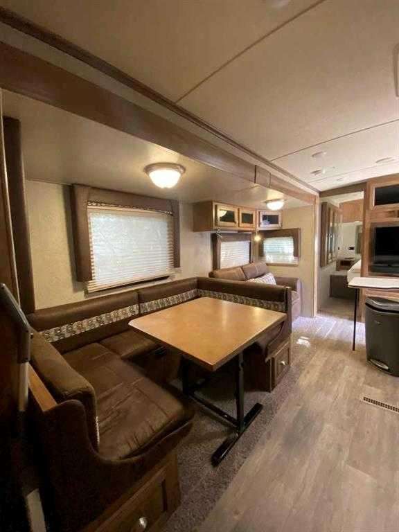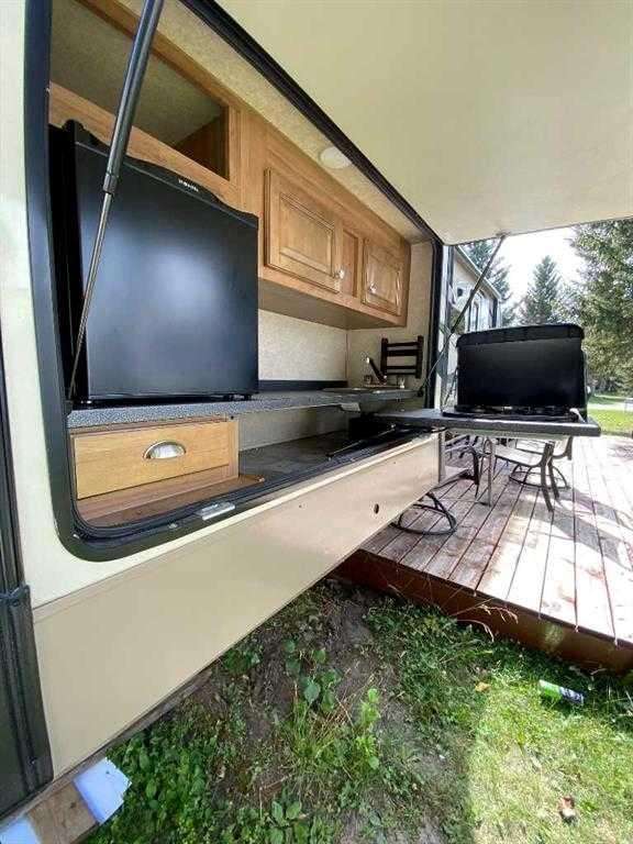 Welcome to #29 Timber Drive in the beautiful Tall Timber leisure Park. If you are looking for a well laid out family geared RV in a super family friendly RV park, then look no more...This Cadillac unit could sleep 8 with a great family room area in the rear consisting of 3 bunk beds and a love seat hide-a-bed the perfect kid zone. The main area has a couch, TV, eating nook, large fridge, covered sink (making for extra counter), microwave and covered stove top and oven. The master bed room at the front has plenty of storage and its own TV. The roomy bathroom has a large shower with room to move around. Seriously one of the best floor plans I've seen in an RV and it shows like new! Definitely a 10! The west facing deck has room to enjoy your evening with your favorite beverage on but I would be remiss if I didn't mention the FABULOUS outdoor kitchen WOW!!! The site includes a roomy shed, firepit area and a wonderful shade tree to relax under. Tall Timber is one of Sundre's most sought after RV parks where you own the lot and the extra's include an indoor swimming pool with a large hot tub, snack/convenient store, pickle ball court, playground, tennis courts and trails along the Red Deer River. This is a special unit on a great site close to all the amenities. Book a viewing today and get in before this years camping season is over.