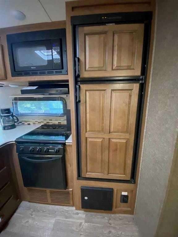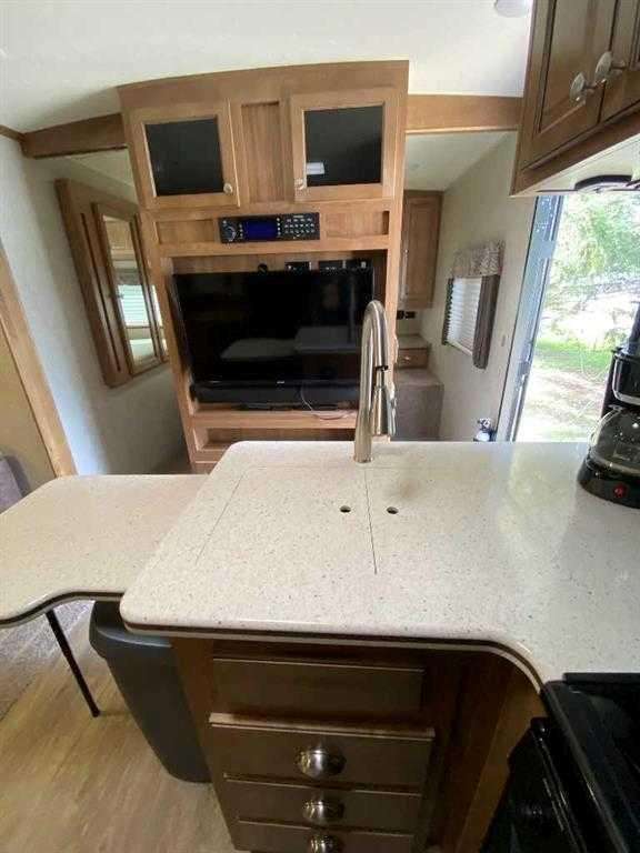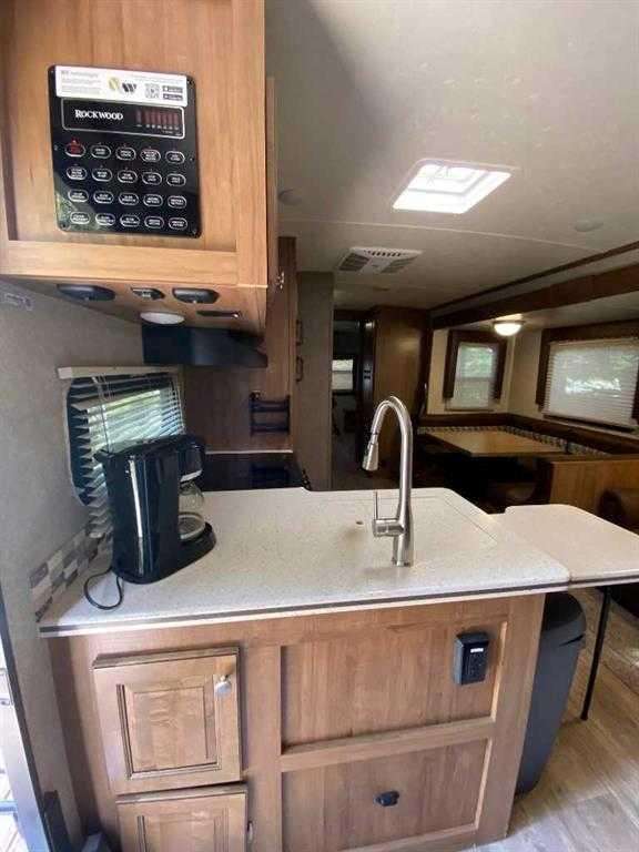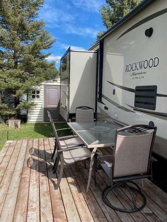 Welcome to #29 Timber Drive in the beautiful Tall Timber leisure Park. If you are looking for a well laid out family geared RV in a super family friendly RV park, then look no more...This Cadillac unit could sleep 8 with a great family room area in the rear consisting of 3 bunk beds and a love seat hide-a-bed the perfect kid zone. The main area has a couch, TV, eating nook, large fridge, covered sink (making for extra counter), microwave and covered stove top and oven. The master bed room at the front has plenty of storage and its own TV. The roomy bathroom has a large shower with room to move around. Seriously one of the best floor plans I've seen in an RV and it shows like new! Definitely a 10! The west facing deck has room to enjoy your evening with your favorite beverage on but I would be remiss if I didn't mention the FABULOUS outdoor kitchen WOW!!! The site includes a roomy shed, firepit area and a wonderful shade tree to relax under. Tall Timber is one of Sundre's most sought after RV parks where you own the lot and the extra's include an indoor swimming pool with a large hot tub, snack/convenient store, pickle ball court, playground, tennis courts and trails along the Red Deer River. This is a special unit on a great site close to all the amenities. Book a viewing today and get in before this years camping season is over.