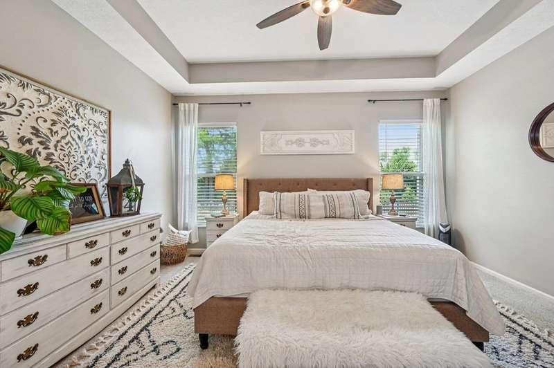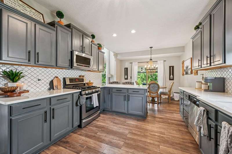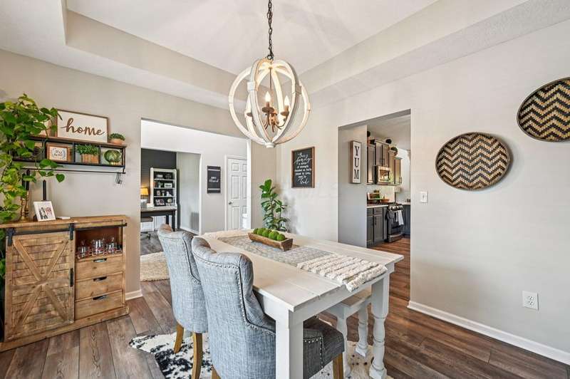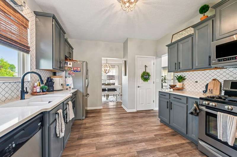 Located in the desirable Margie's Cove subdivision, this character-filled 4 bedroom home featuring a first floor master is one you do not want to miss! From the moment you arrive the inviting front porch sets the tone for what awaits inside. All rooms have been updated with special touches, kitchen has updated cabinets, quartz countertop and new backsplash and flows into the main living space with plenty of windows allowing natural light in. Upstairs the additional 3 bedrooms and loft provides the perfect flex space for a playroom or reading nook. Enjoy outdoor living at its finest with a covered patio complete with a built-in gas grill, leathered granite countertops and plenty of room for relaxing and hosting guests. The partially finished basement offers extra living space and endless potential with additional storage space. Other highlights include an extended concrete driveway, a new A/C system and fully fenced in yard. Do not miss out on this property!